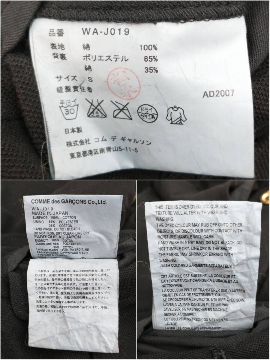 | ブランド:JUNYA WATANABE MAN/ COMME des GARCONS/LACOSTE 表記サイズ:S 型番:WA-J019 着丈:約68cm 袖丈:約67cm 身幅約:42cm 肩幅:約42cm 素材:コットン/鹿の子 カラー:ブラック |