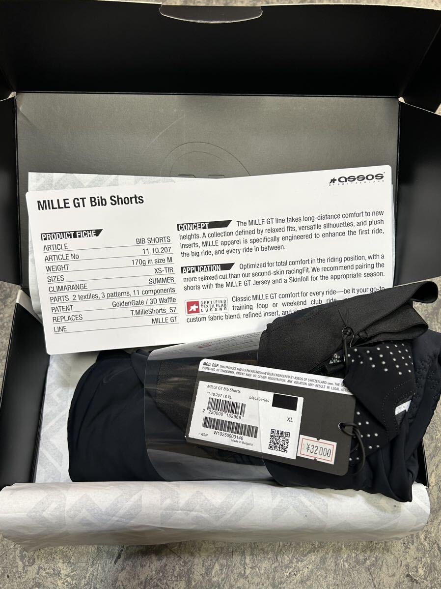 送料込み 新品 未使用 箱入り『アソス ミレGT ビブショーツ XLサイズ 黒』ASSOS Mille gt bib shorts