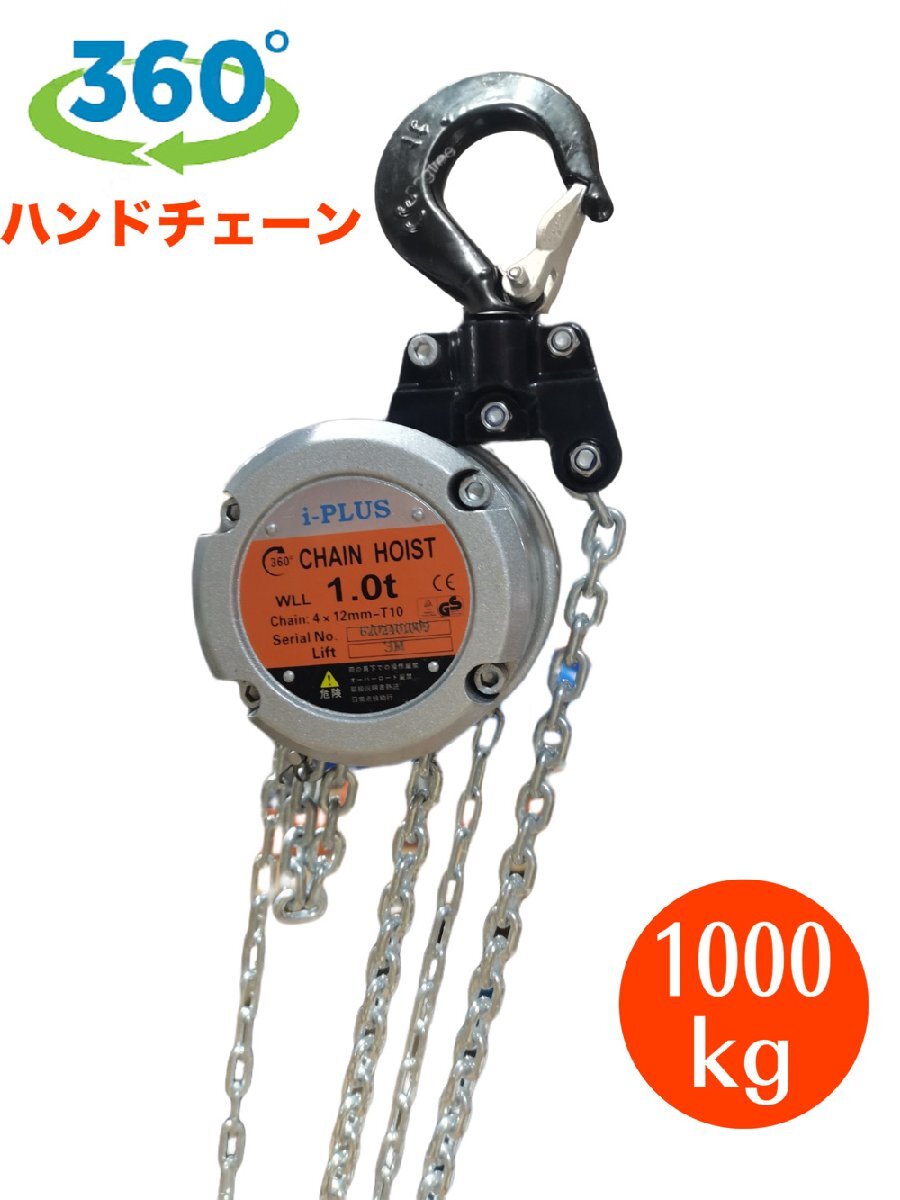 360度アルミ製 チェーンブロック 1000kg チェーン3m 360度自在引きチェーンホイスト グレード100 軽量 小型 レバーブロック 1.0t 3m 自在引