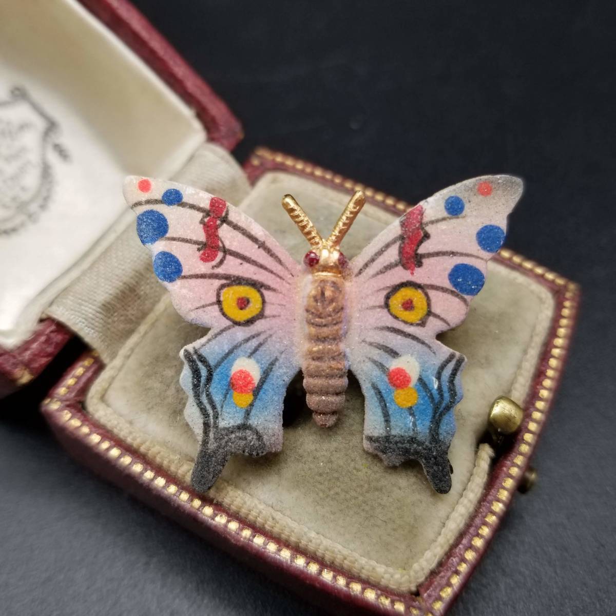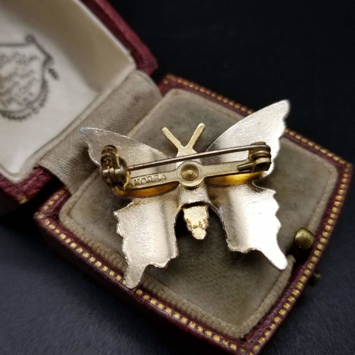 ピンクグレーの羽 蝶 ヴィンテージ ブローチ 昆虫モチーフ レトロ コスチュームジュエリー 小ぶり YDB78