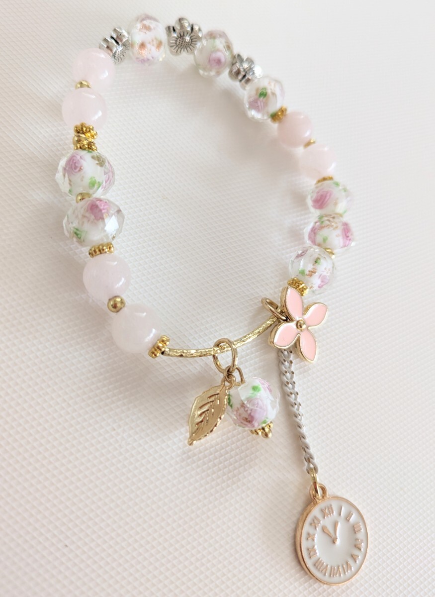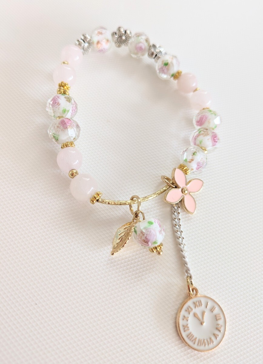 こちらは、新品未使用 お花 フラワー チャーム アクリルビーズ ブレスレット になります♪