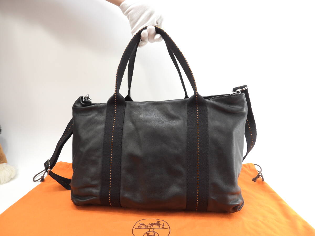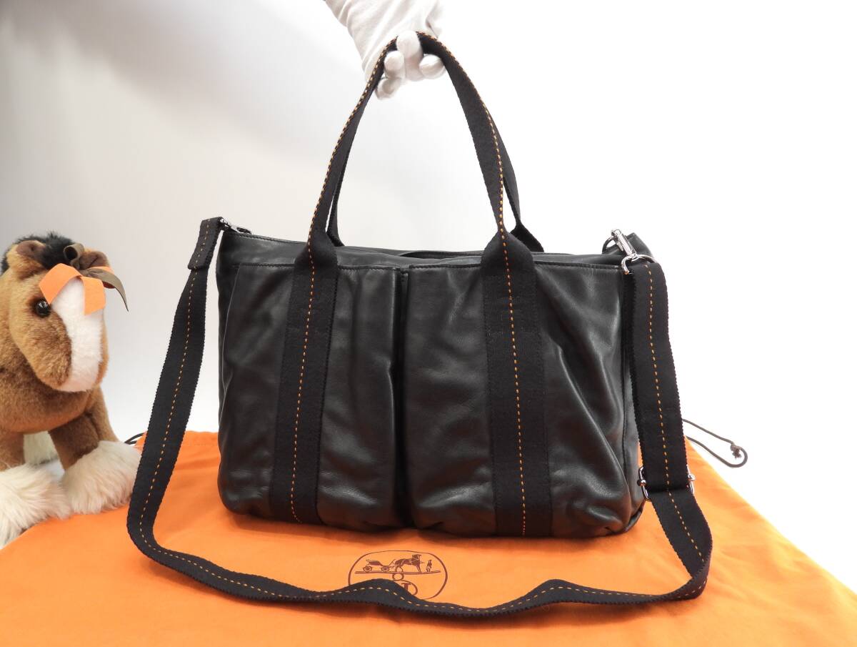エルメス キャラバンホリゾンタルMM レザー黒 クロスボディバッグ ハンドバッグ@ 48