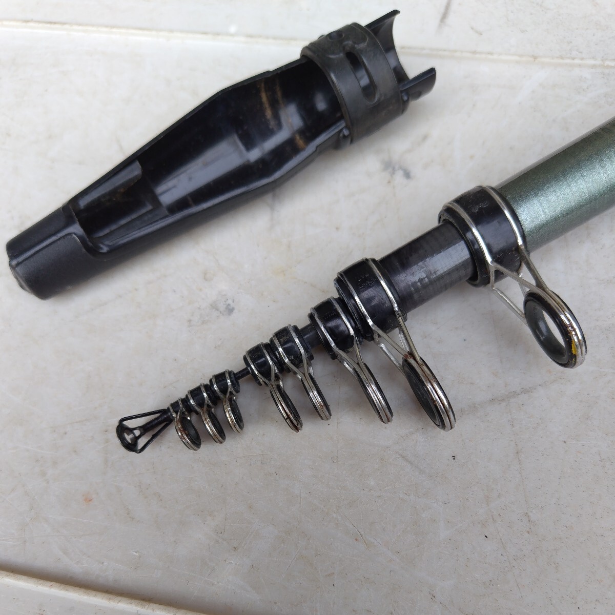穂先から15cm程短いです。ガイド1個分 尻栓を無くし別のに変えてます。少し硬いです。少し隙間が有ります。写真記載。