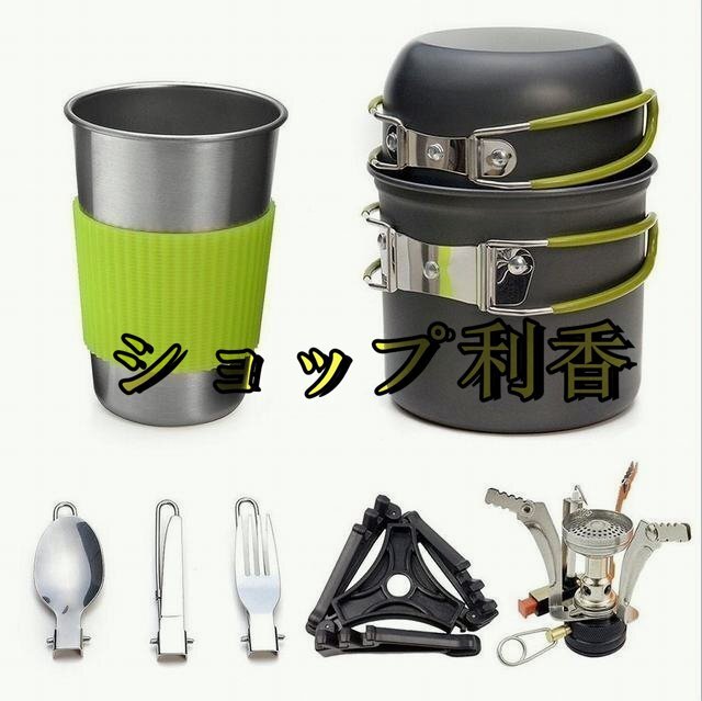 【 セット内容 】 アルミニウム鍋2,バーナー1,カップ1,スプーン1,テーブルナイフ*1,フォーク*1,小さな布バッグ*1,メッシュバッグ*1