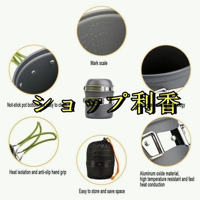 【安全無毒】キャンプ用食器には食品グレードの素材を使用、高度な陽極酸化処理を施した超軽量アルミニウム材で作られています。熱伝導に優れたアルミニウムで高温や摩擦への耐久性を高めています。鍋の内部は焦げ付きにくく洗いやすいノンスティック仕様。