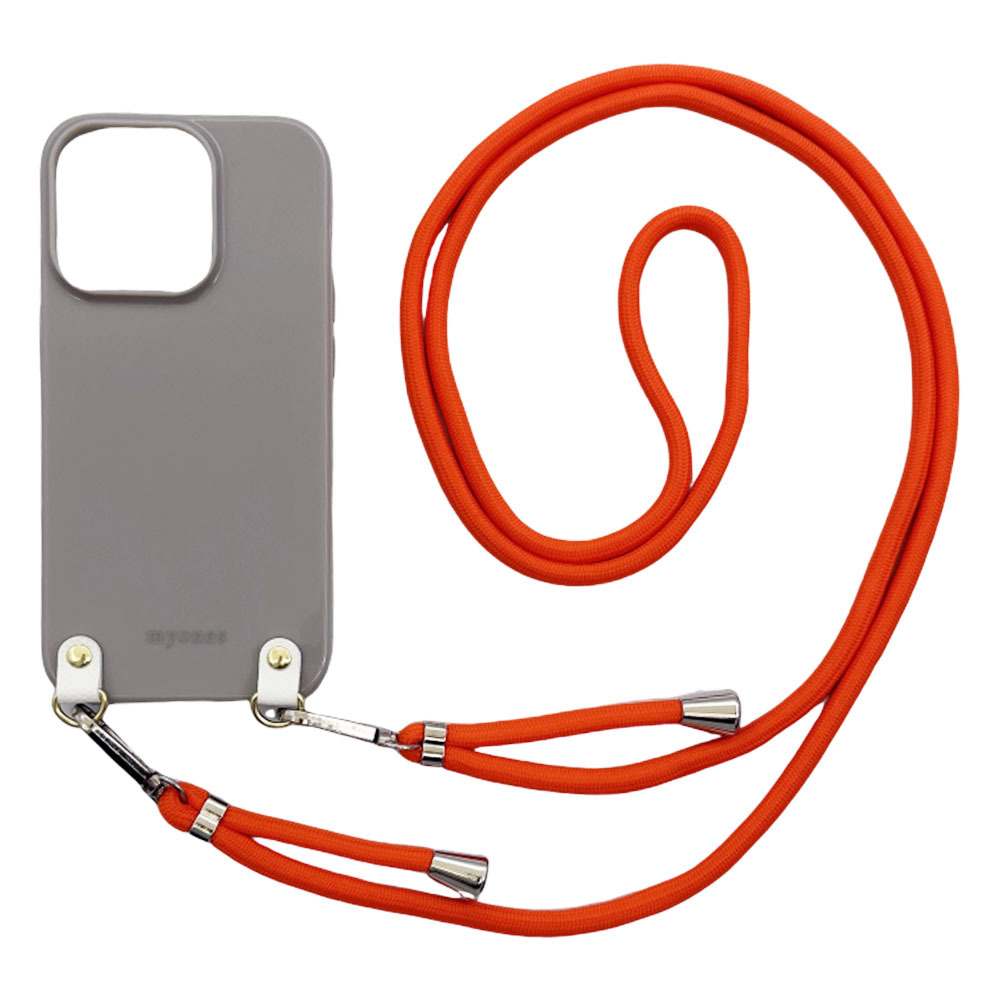 iPhone14 Pro(くすみグレー/オレンジ)ひも TPU ストラップ 肩掛け 首かけ 斜めが スマホケース かわいい