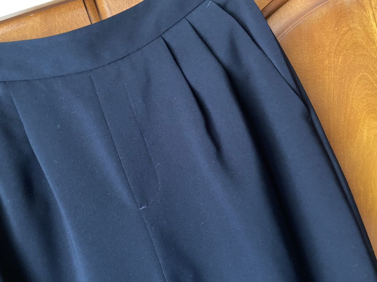 、パンツです。カジュアルでも、フォーマルでも着用できます。横ファスナーなく、背中部分がゴムで着脱が簡単、ホームクリーニングで簡単にお洗濯が出来て、しかも、ノーアイロンです。オールシーズンに活躍できます。状態も良いかと思います。