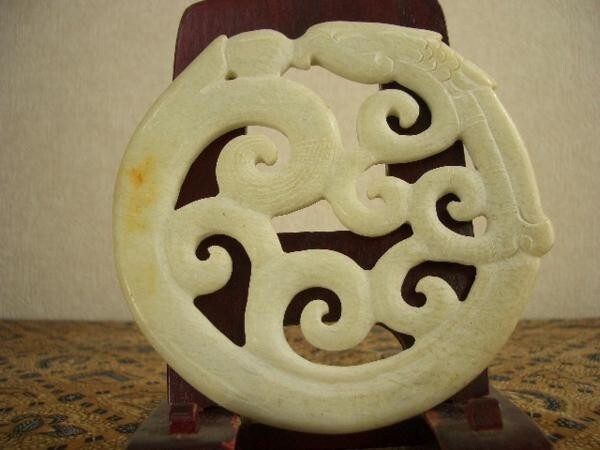 【商品説明】中国の透かしの玉壁。【サイズ】12×12センチ【平成27年3月4日出品】