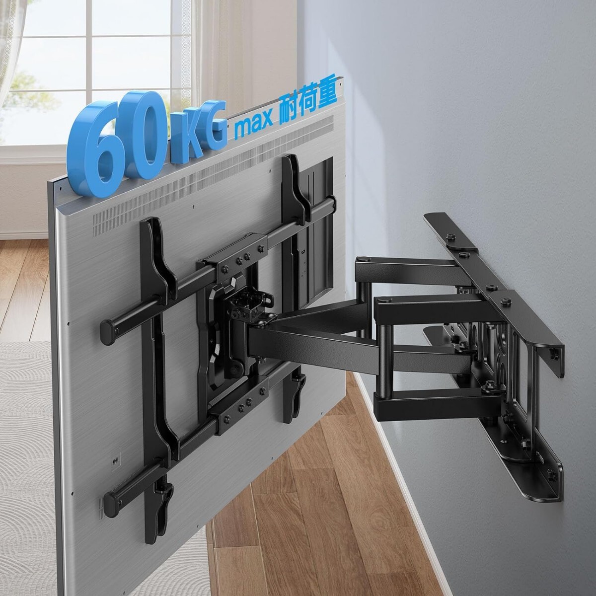 PERLESMITH テレビ壁掛け金具 37~75インチ対応 フルモーション式 耐荷重60kg tv壁掛け金具 かべかけ金具 テレビアーム ウォールマウント 前後&左右&上下多角度調節 VESA600x400mm