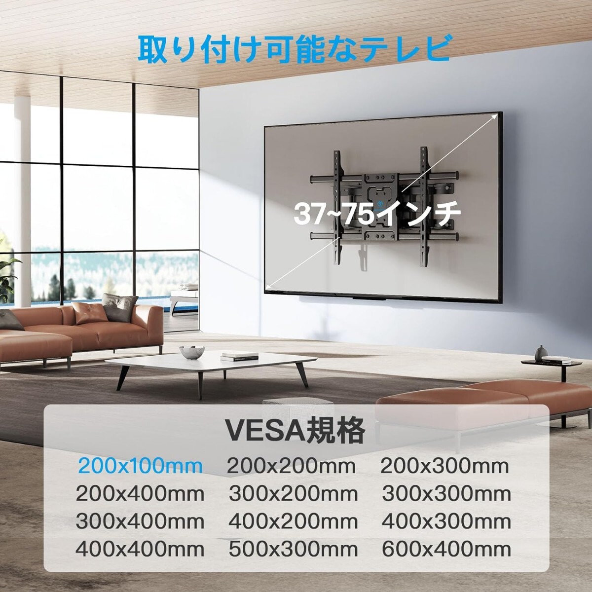【37~75インチのテレビに対応】※次の条件を同時に満たす必要があります。①サイズ:37~75インチ以内。