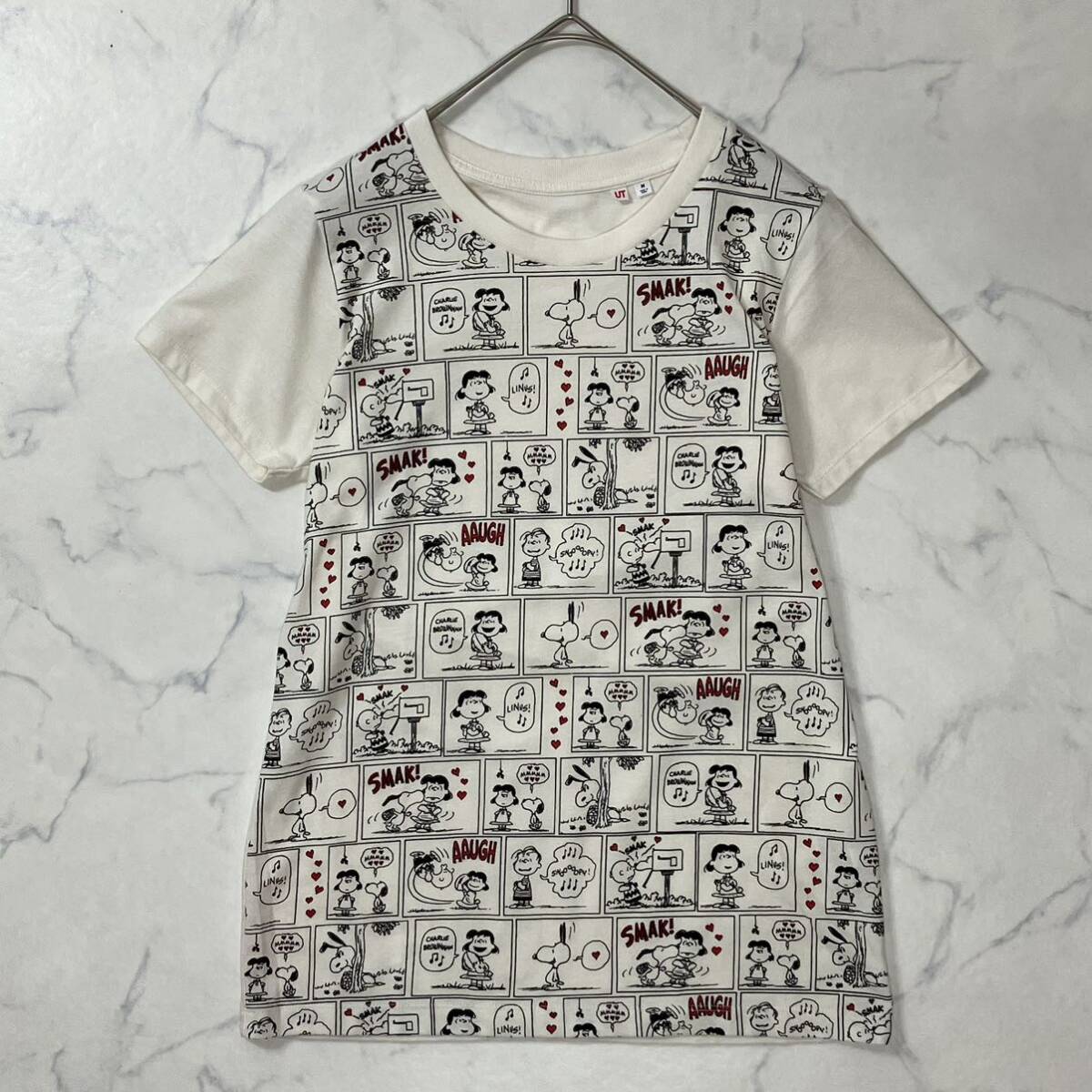 スヌーピー キャラクター プリント クルーネック リブ 半袖 Tシャツ