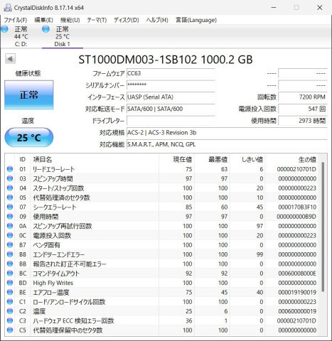 Crystal DiskInfoで確認(2024.01.16)