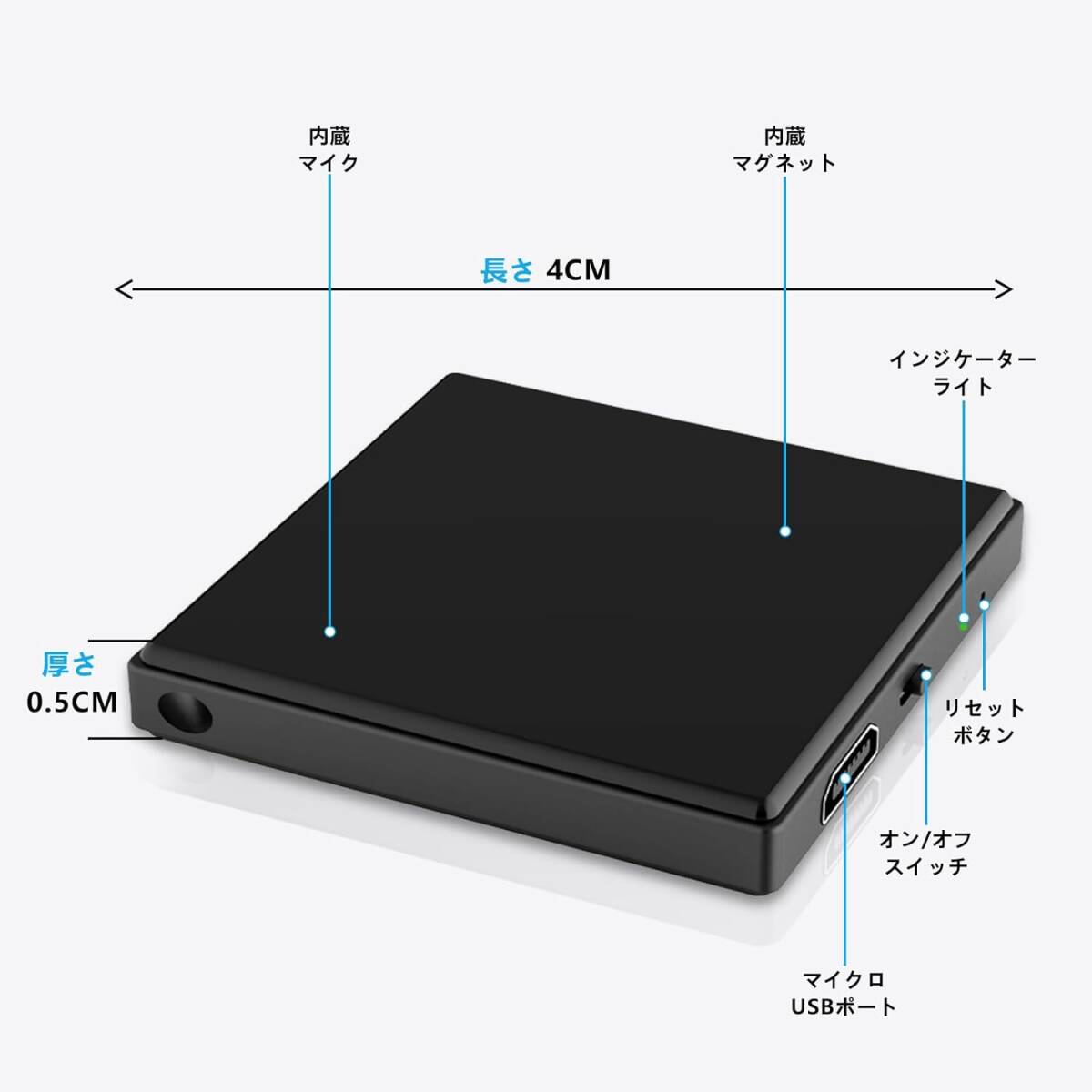 長さ4cm、薄さ約0.5cm、重さ約16.8gと、非常にコンパクト。