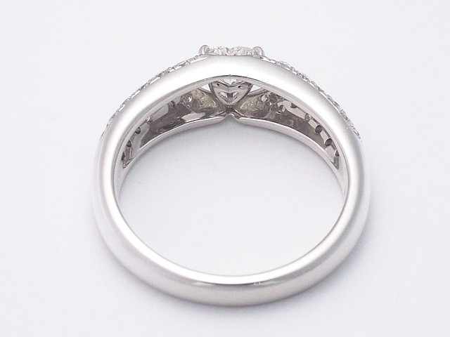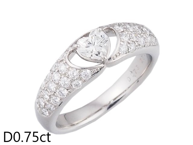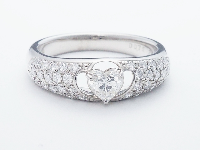 ハート型のセンターダイヤとサイドダイヤの輝きが美しいプラチナ製のデザインリングです。