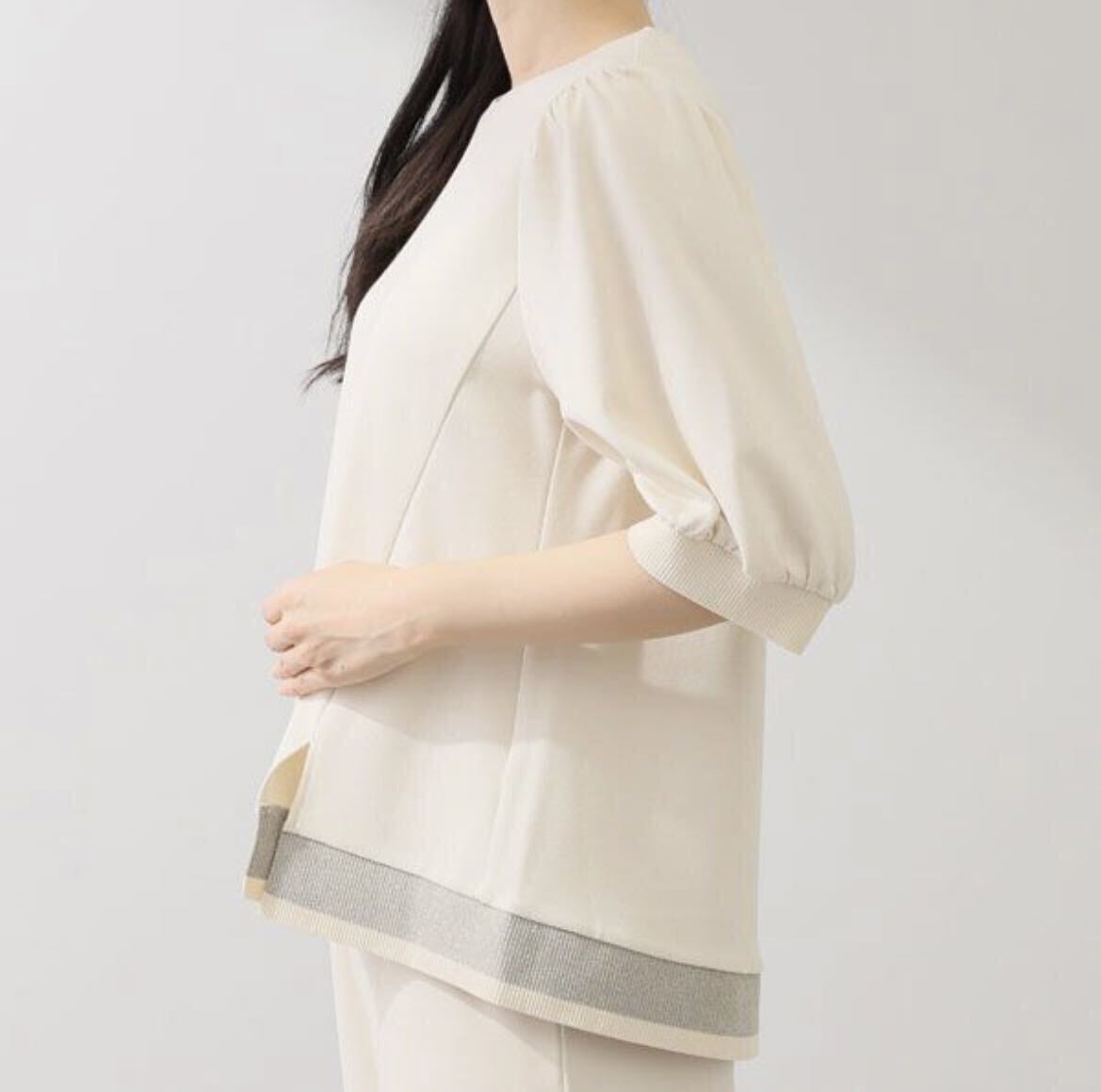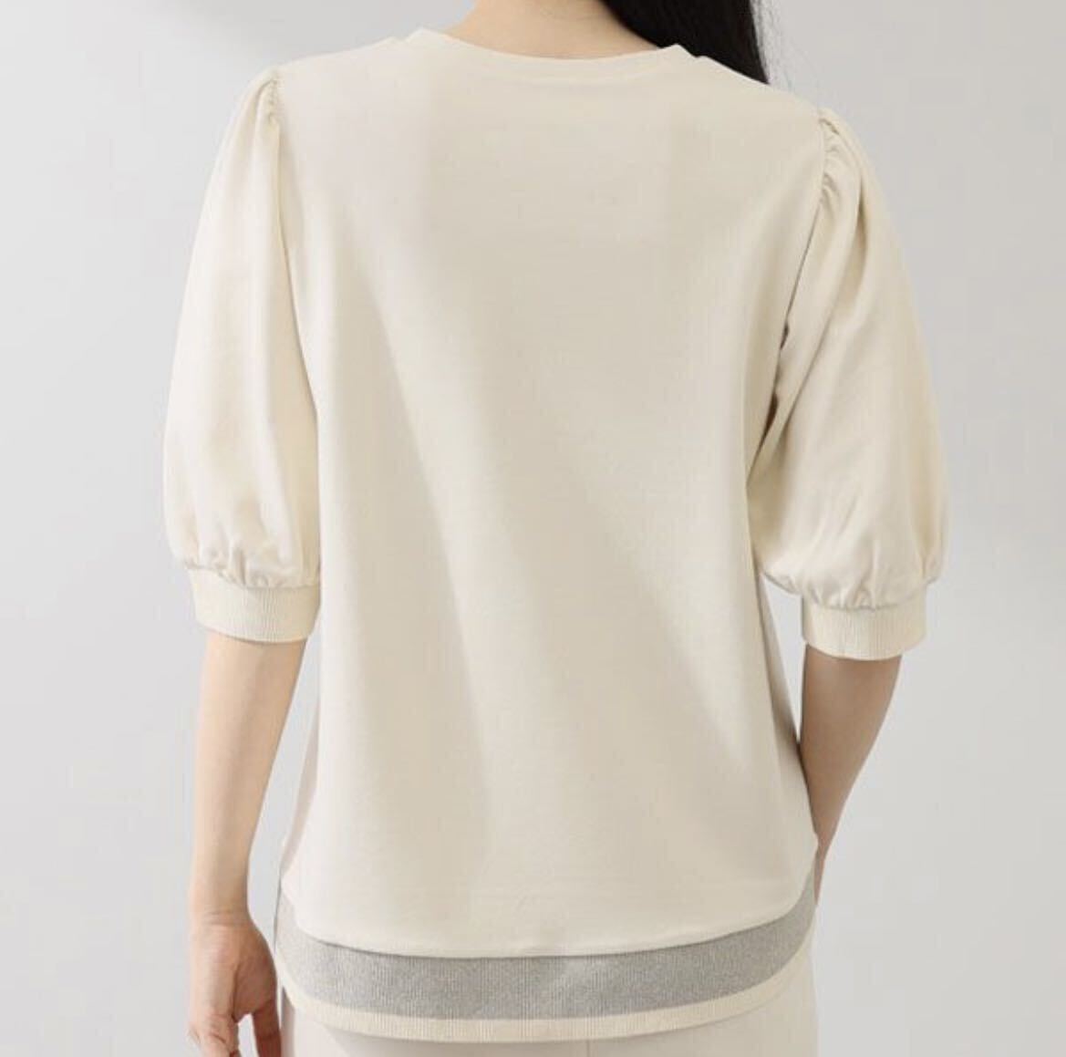 肩をふんわりと包み込むパフスリーブは程良いボリューム感に仕上げました。