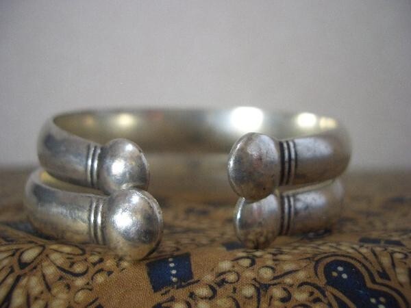 【商品説明】洋銀製の腕輪2点セットです。伸縮可能の為フリーサイズです。*純銀製ではなく、洋銀(銅の合金)製です。【サイズ】内径約17.5センチ・太さ約1.3センチ【平成26年6月25日出品】