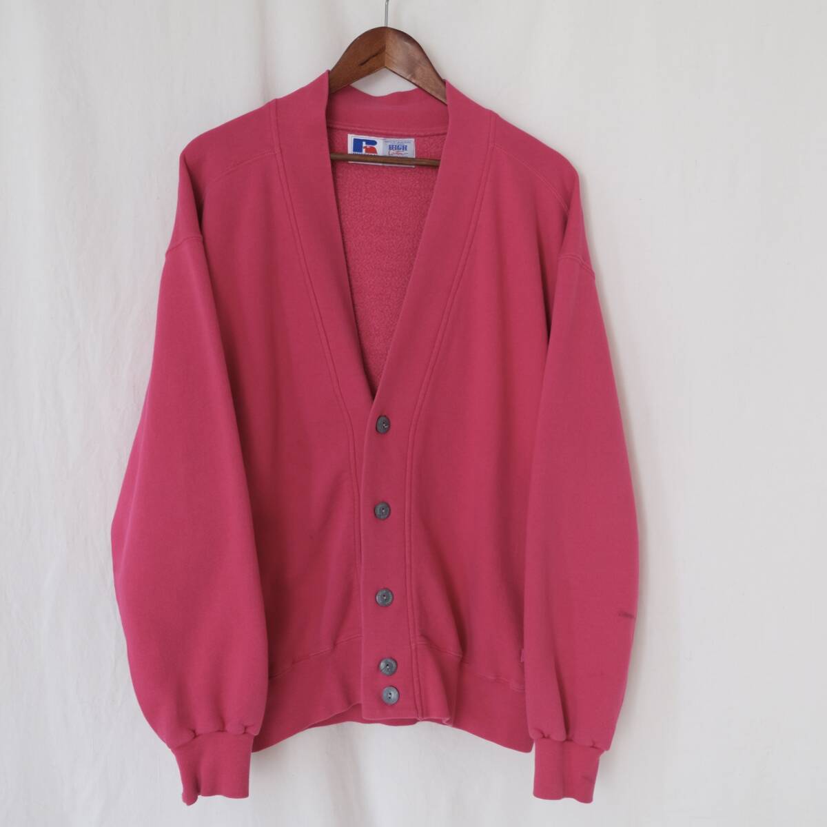 90s【 RUSSEL 】ラッセル ビンテージ HIGH COTTON スウェット カーディガン / ピンク系 / L / トレーナー アメリカ USA製 古着