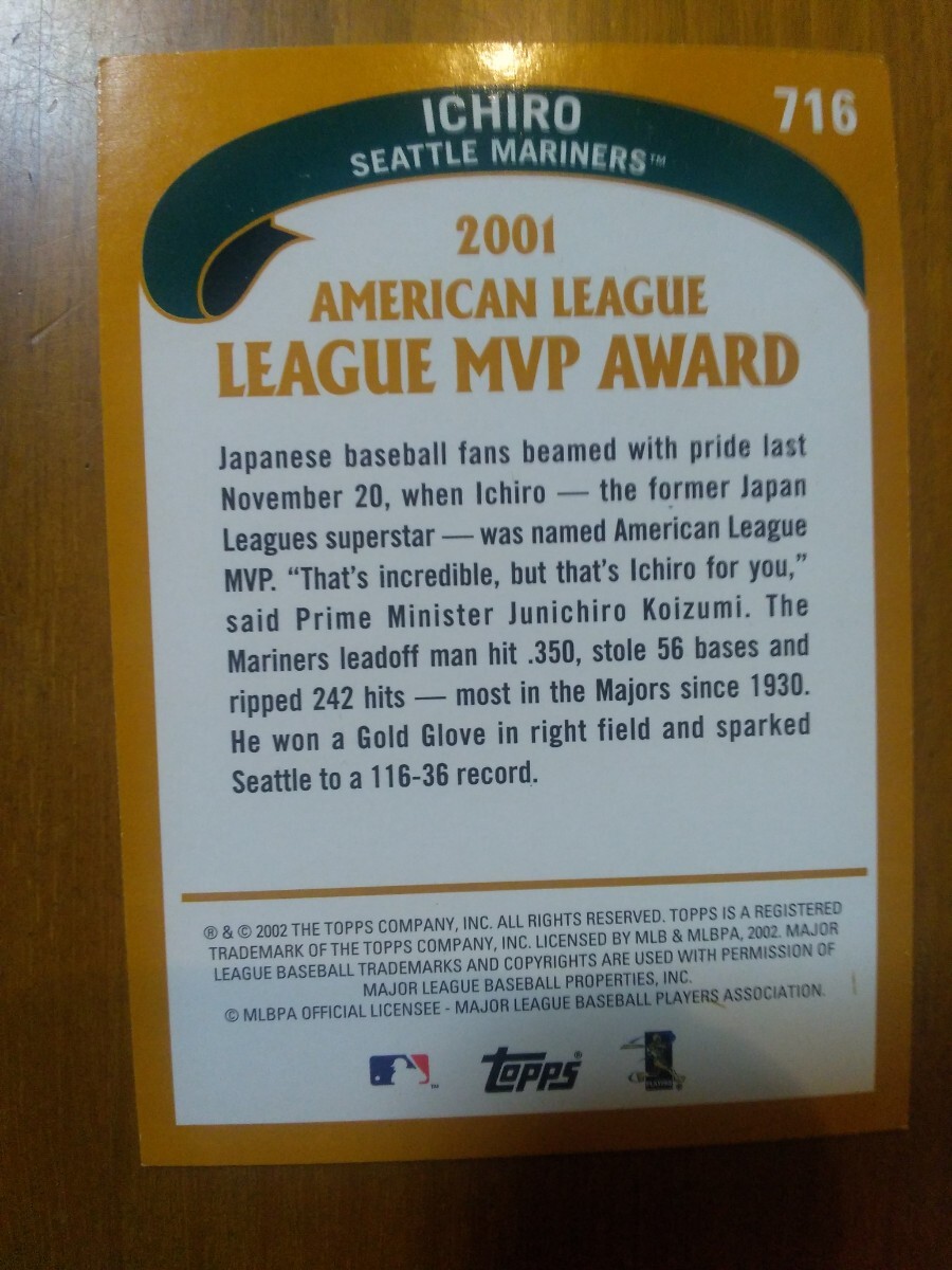 イチロー ICHIRO 2002 TOPPS 2001 LEAGUE MVP AWARD #716