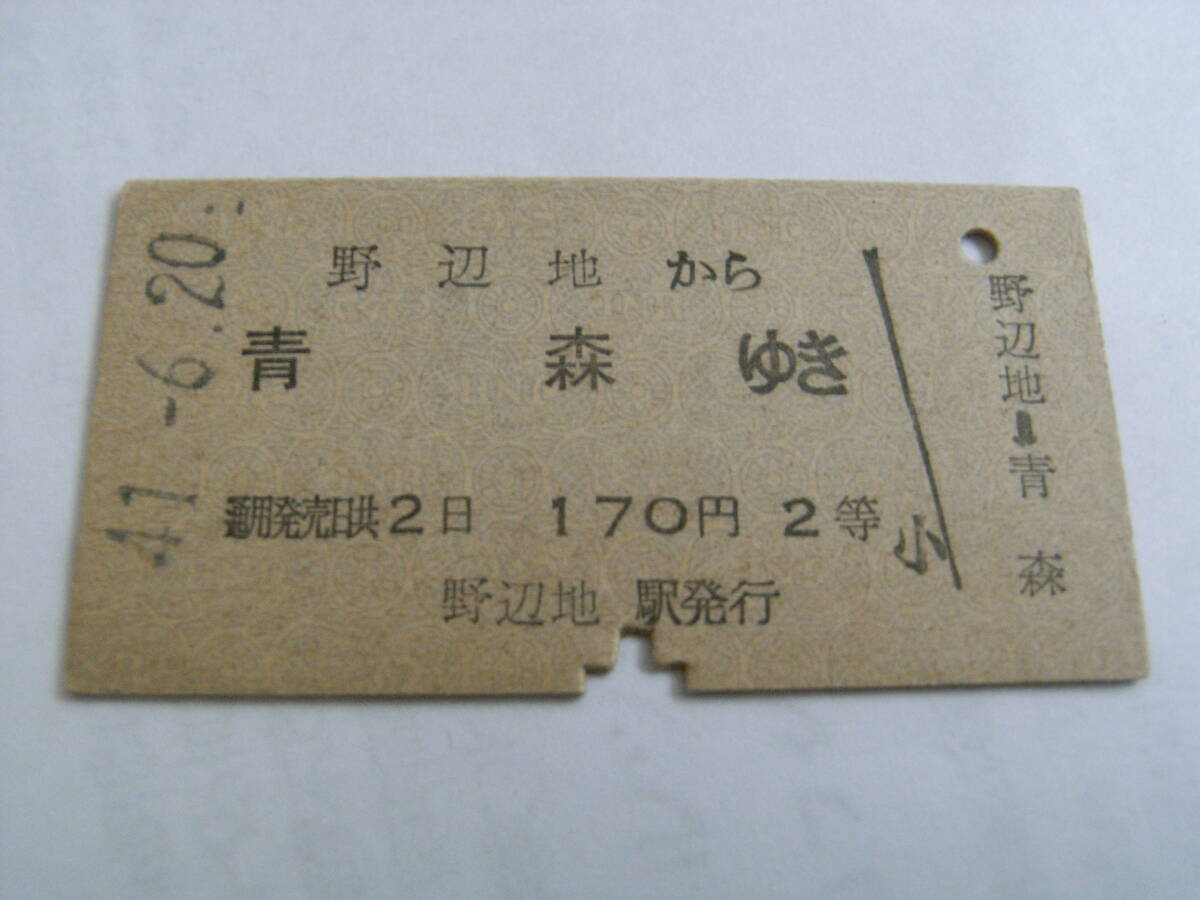 東北本線 野辺地から青森ゆき 170円2等 昭和41年6月20日 野辺地駅発行 国鉄