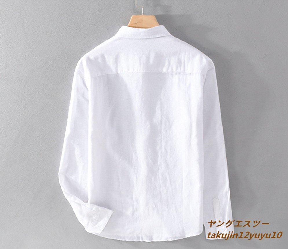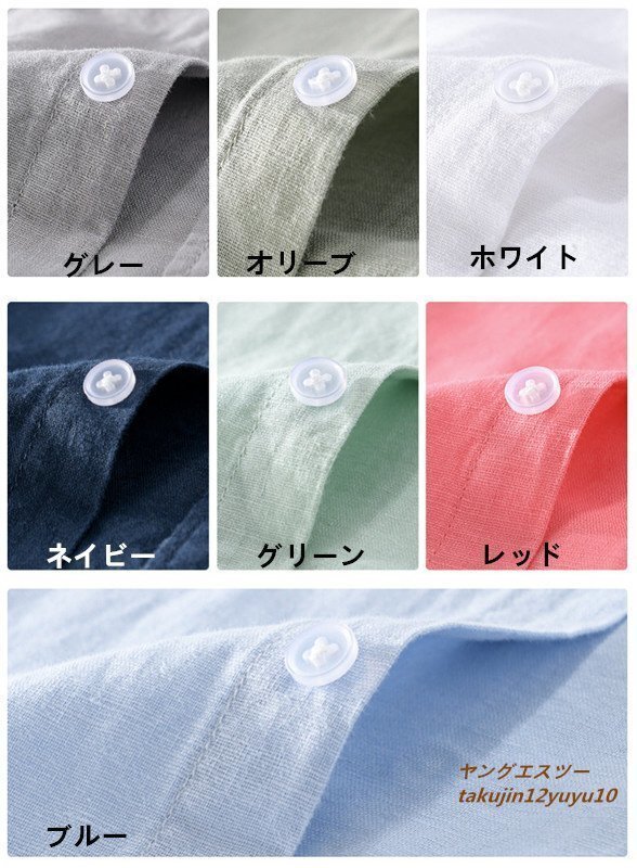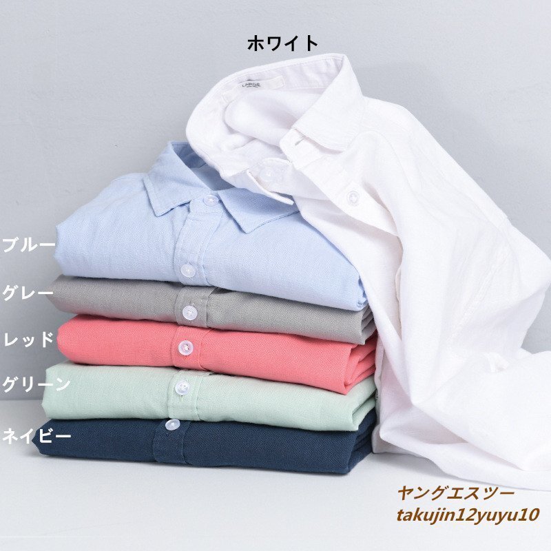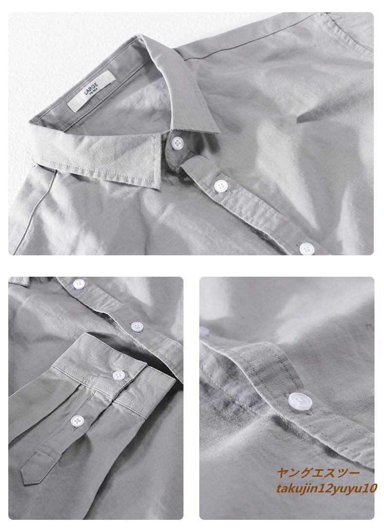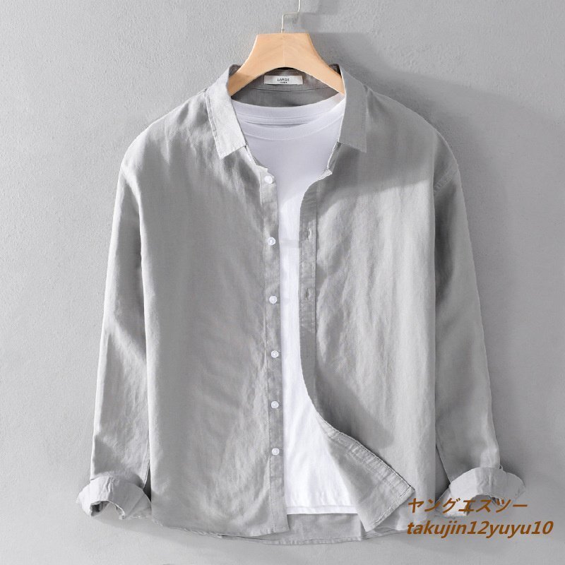 新品 リネンシャツ 長袖シャツ 綿麻 ワイシャツ 無地 Tシャツ 細身 スリム 柔らか 春夏シャツ 七色選択可 カジュアル グレー M