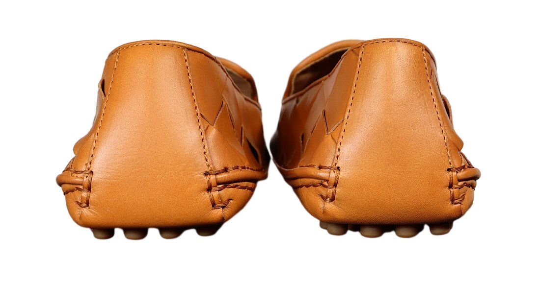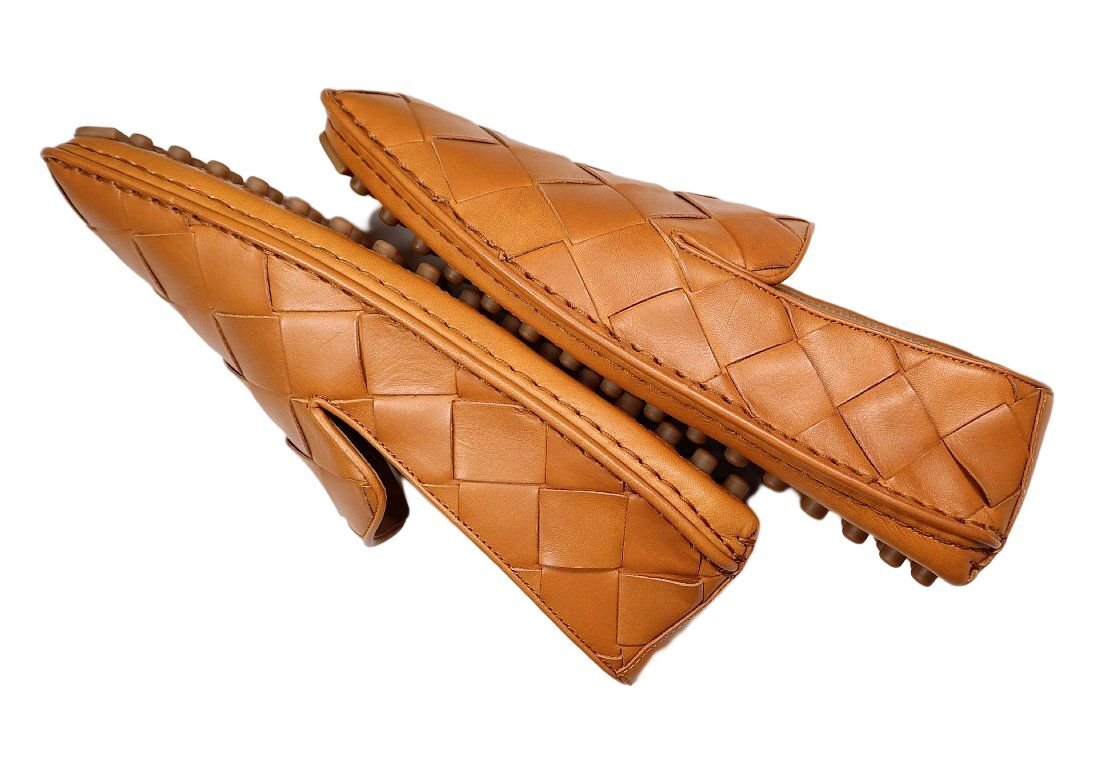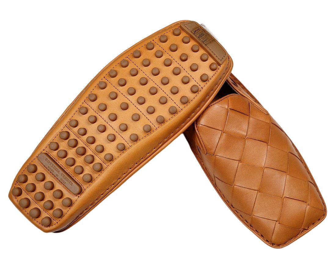 ひと目で「ボッテガ」とわかるデザインですので、女性ウケは良いでしょう。ロゴを主張したデザインではありませんので嫌らしさもありません。 最高級のカーフレザーを使用し、熟練した職人による手間隙かけたハンドメイド製で作りの良さは間違いありません。 もちろんドライビングシューズなので、ドライビング時のペダル操作もラクチン。履き心地も良いので、長時間の運転にも適していますし、高級車にもマッチいたします。 こちらは上質な皮革のみを厳選し使用しております。細かい傷やスレ、揉み柄のムラ、斑点が見られる場合がありますが、これは天然素材独特の風合いであり、欠陥ではありません。念のため、これらのことをご了承の上ご入札ください。 高級スリッポンを大変お安くお譲りしますので、気に入った方はぜひどうぞ!