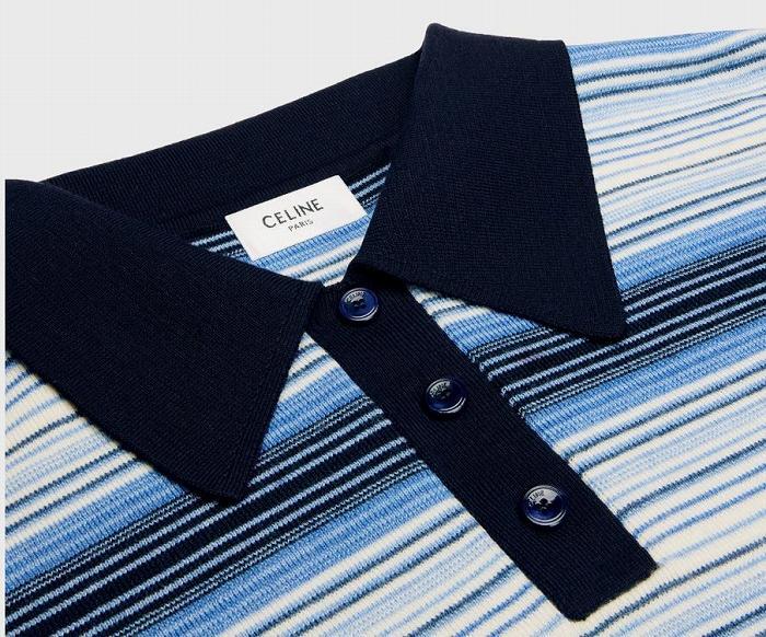 | セリーヌ(CELINE) トリオンフ ストライプ ポロシャツ トップス XS 2AO9A ライトブルー ウエア レディース(新品) |
