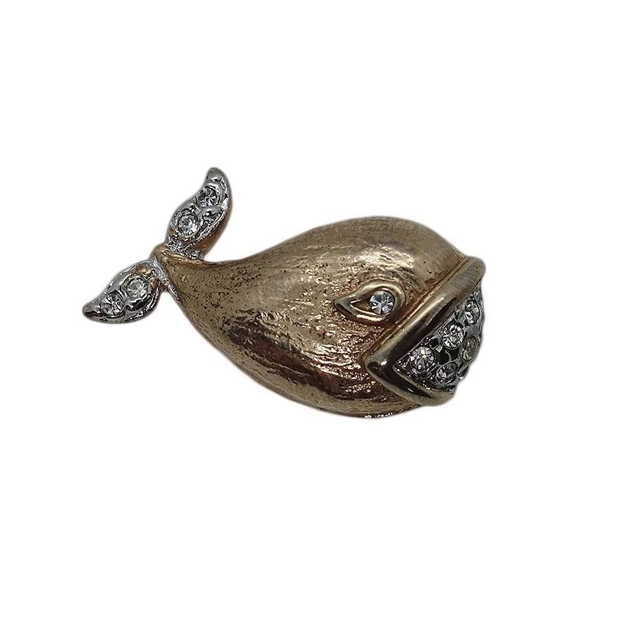 鯨 ピンズ クジラ 金色 ラインストーン装飾 ピンバッチ ピンバッジ 留め具付き アメリカ輸入雑貨 アクセサリー レトロ
