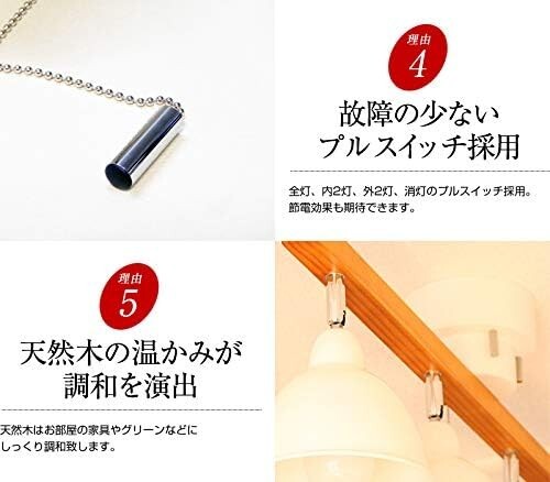 • 適応畳数:~10畳まで 10畳であれば60W相当のLED電球をお使いください。4灯(全灯、内2灯、外2灯、消灯)プルスイッチ
