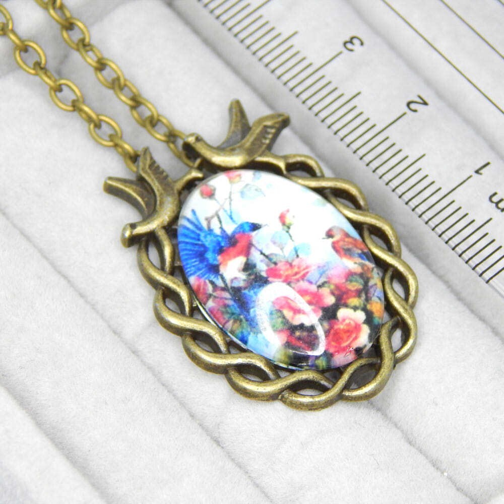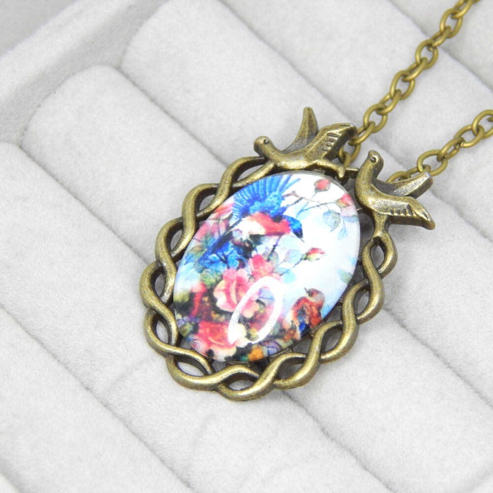 残り1点★新品★送料無料 小鳥 バード 花 フラワー デザイン アンティーク風 レディース ネックレス ペンダント D2241 プレゼント 贈り物