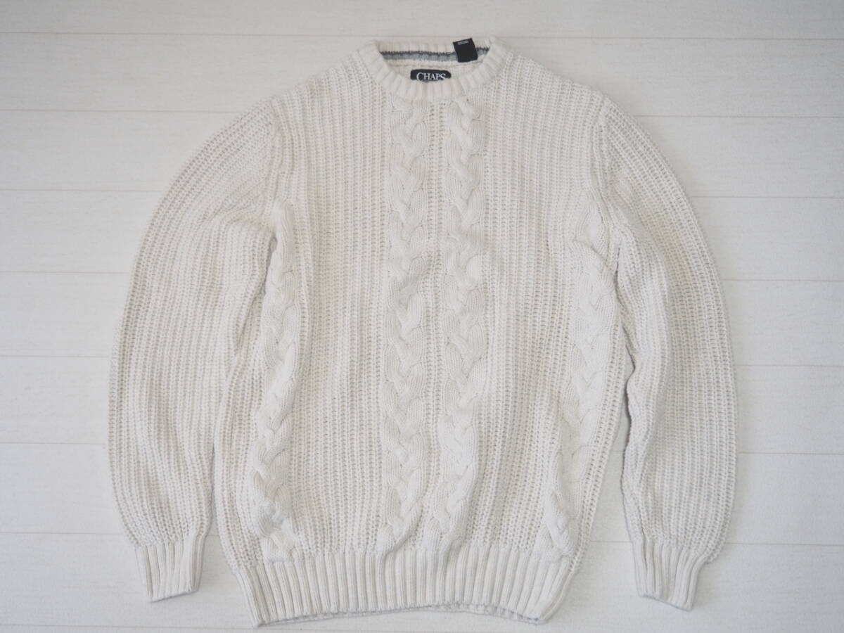 CHAPS チャップス USA直輸入 古着 ローゲージ ニット セーター メンズ M アイボリー トップス 中古