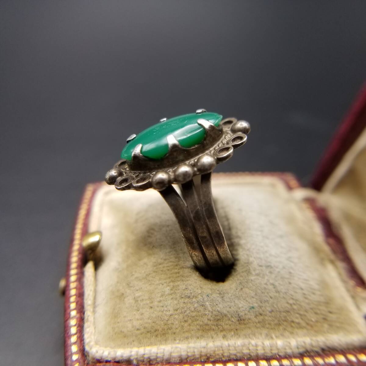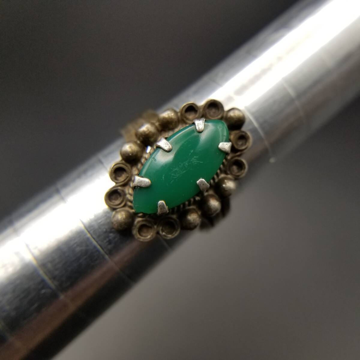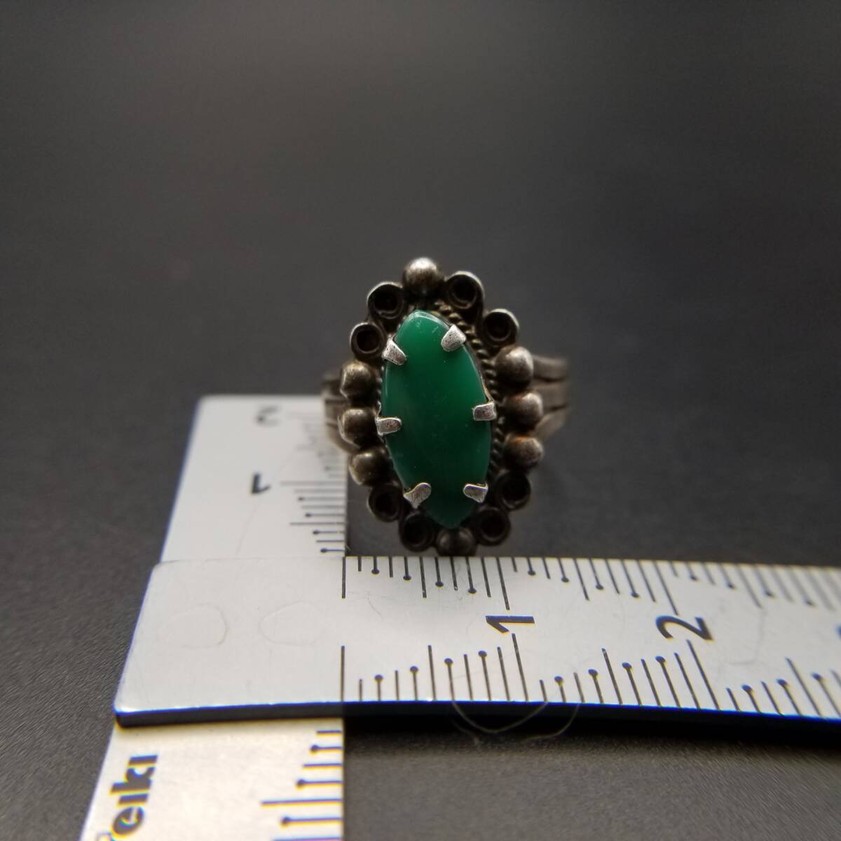 RMM メキシコ 925 シルバー モスグリーン マーキスカット ドットリム ヴィンテージ リング 指輪 銀 フラワーモチーフY15-N