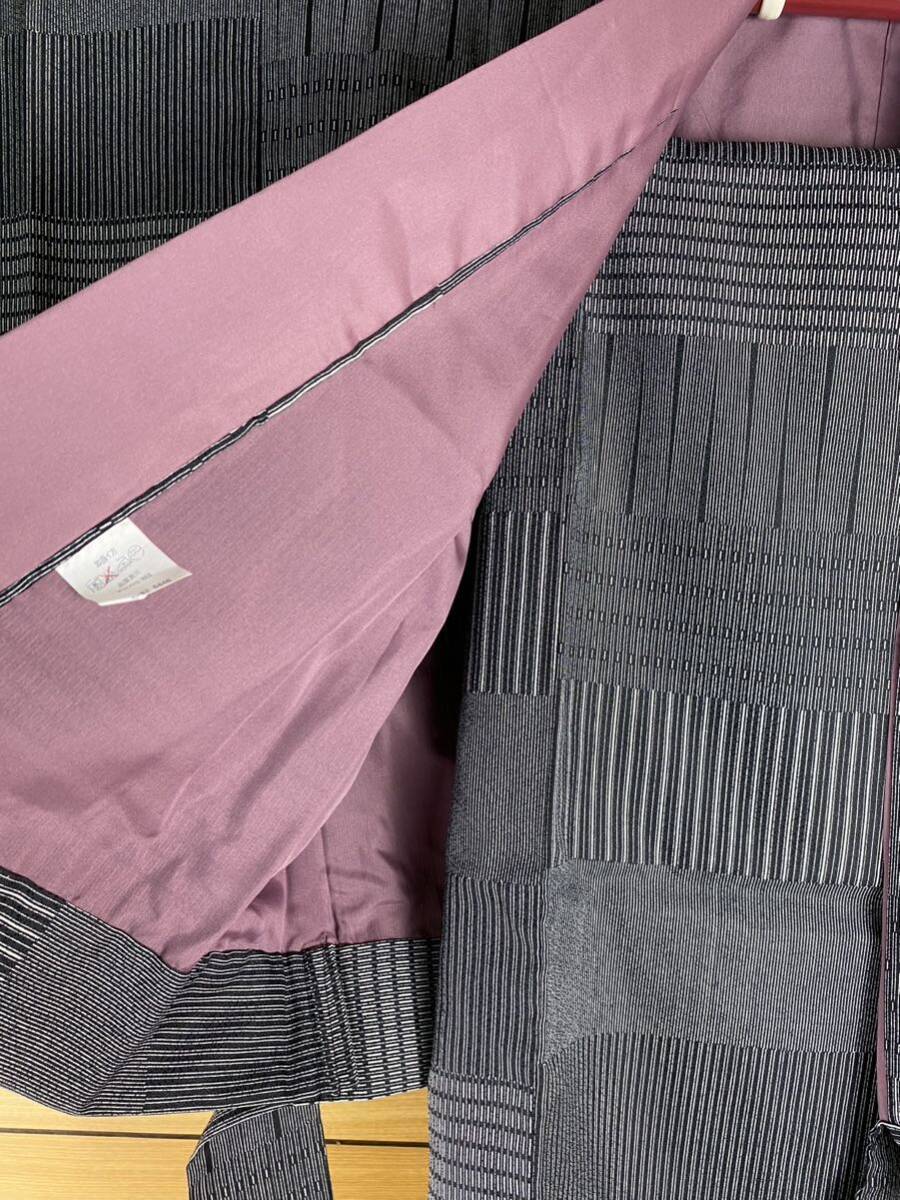 未使用 洗える 二部式着物 身丈 50 裾 100 化繊 ブラック 二部式 着物 小紋