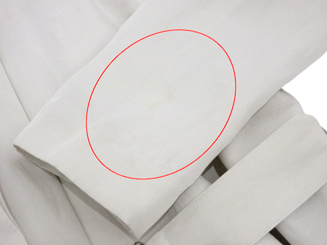 | 商品説明 | 商品をご覧いただきありがとうございます。 NTSリユース芦屋と申します。 兵庫県芦屋市のリユースショップです!! 兵庫県公安委員会許可第631301900009号 厳選し厳重に管理した商品を出品いたします。 どうぞよろしくお願い致します!! 【商品状態】 左袖先に薄いシミ、お汚れが見受けられ、多少使用感はございますが、他に特記する傷や汚れなく、コンディションは良好です。 ※写真参照 (画像中心辺りに白っぽいモヤが見えるかもしれませんがカメラレンズのホコリが写り込んだものです。) 撮影環境やブラウザの違い等で実際の色味と多少異なる場合がございます。 できる限り実際の色味に近づけてはいますが、予めご了承くださいませ。 付属品:ベルト 【表記サイズ】 M(レディース) 【実寸サイズ】 肩幅:約49cm 身幅:約51cm 袖丈:約52cm 着丈:約101cm ※平置き計測 【素材表記】 ケアタグ画像参照 |