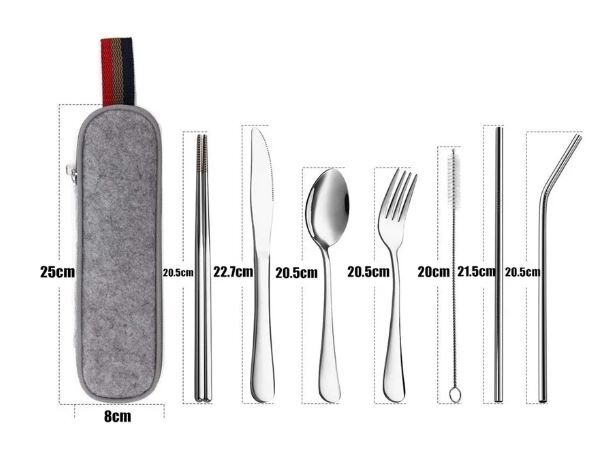 トラベルキャンプカトラリーセット、箸、ケース付きストローポータブル食器、ステンレス製トラベル用品セット
