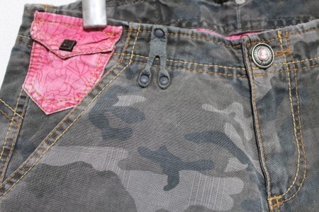 ●商品詳細● サイズ【平置実寸】(多少の誤差はご了承下さい)24インチ【平置き実寸】ウエスト37cmヒップ41cm股上21cm股下31cm腿巾25.5cmすそ巾22cm カラー カーキグレー 素材 綿100%生産国 スペイン製★かっこいいビンテージ感のあるハーフパンツ ボタンやベルトループ、きれいな赤色のパッチワークがお洒落。★フロントジッパー、ポケット(前3後2)、ボタンかわいい、ローライズ。ステッチカラー(ライトブラウン、ブラウン) ★掲載画像と実商品のカラーが若干異なることがございます。お買い求めの際はご了承ください。