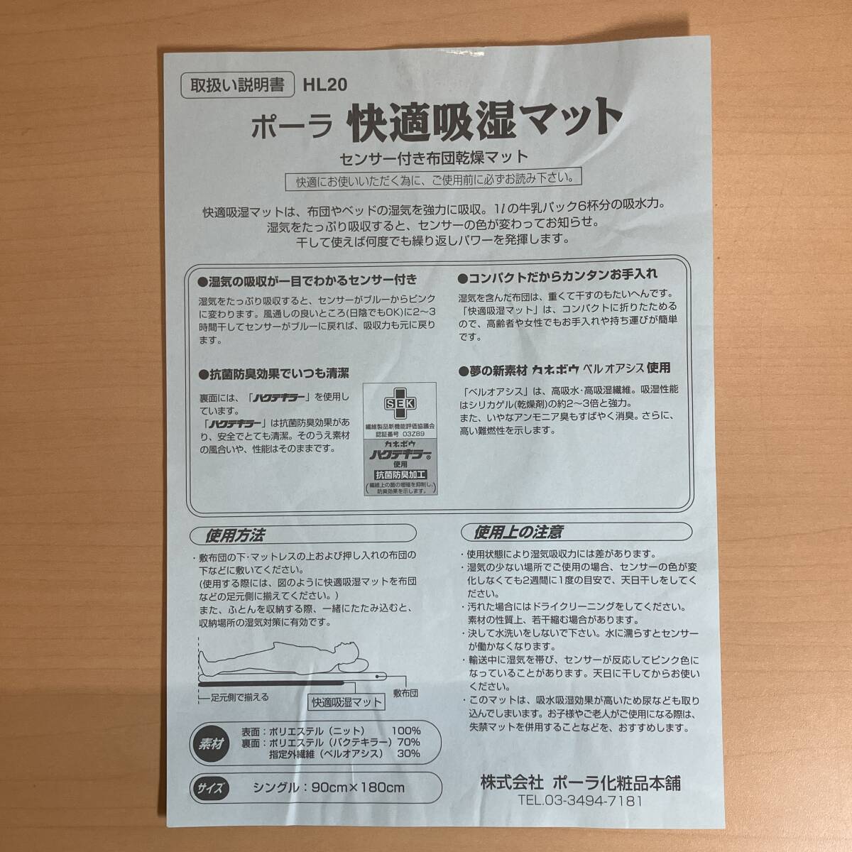 POLA ポーラ 快適吸湿マット・センサー付きふとん乾燥マット(シングル:90×180cm)HL20