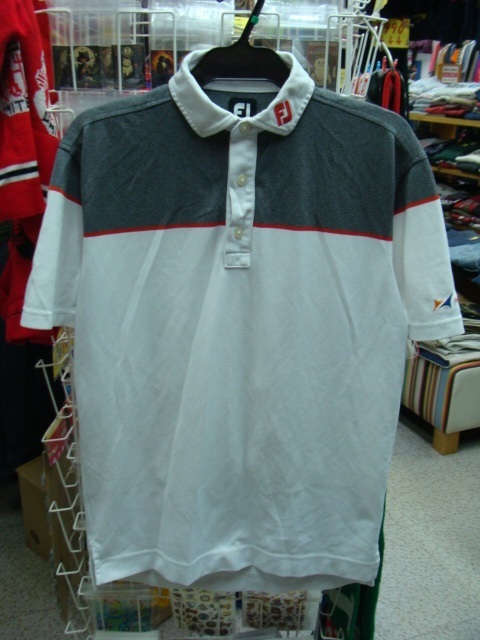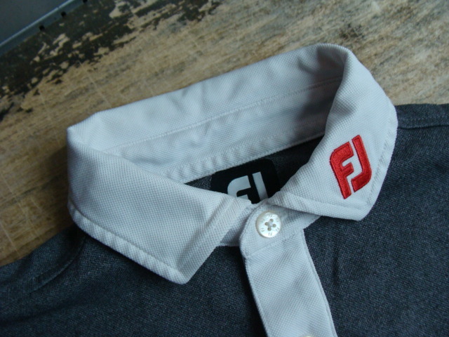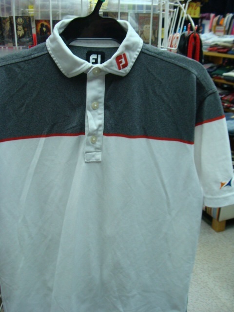 FJ フットジョイ 法政大学ワンポイント ポリエステル ポロシャツ グレー×白 (M) ゴルフウエア | |||||||||||