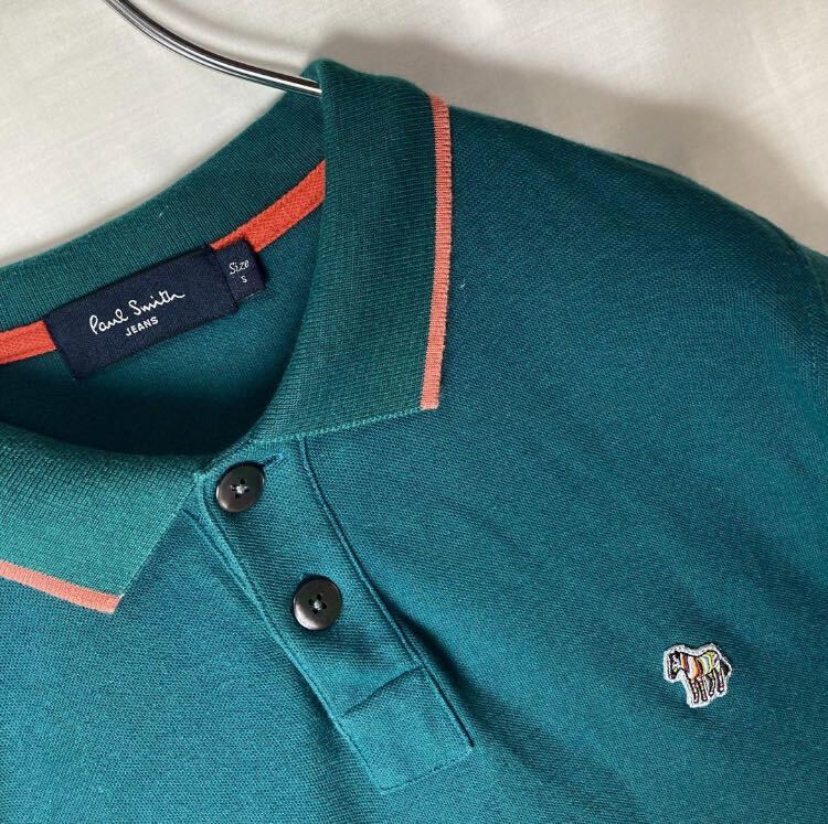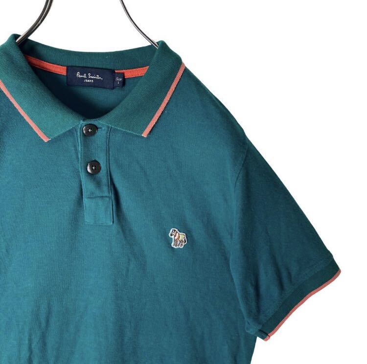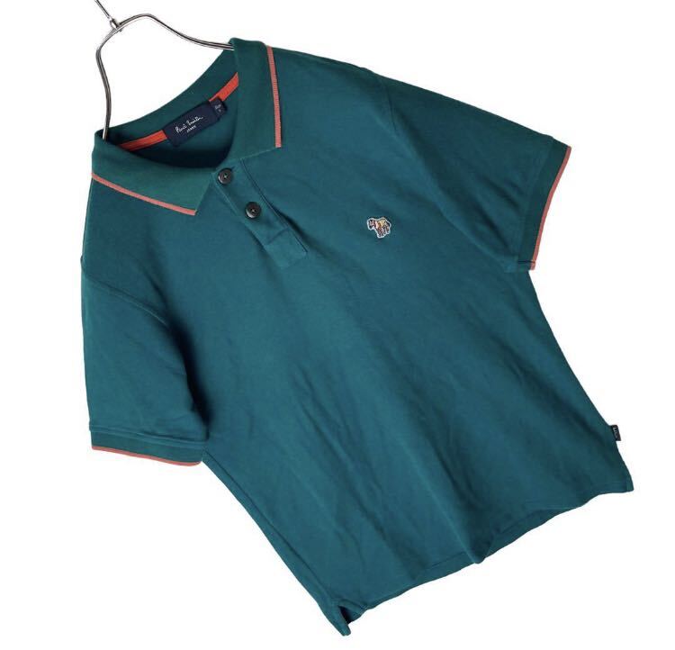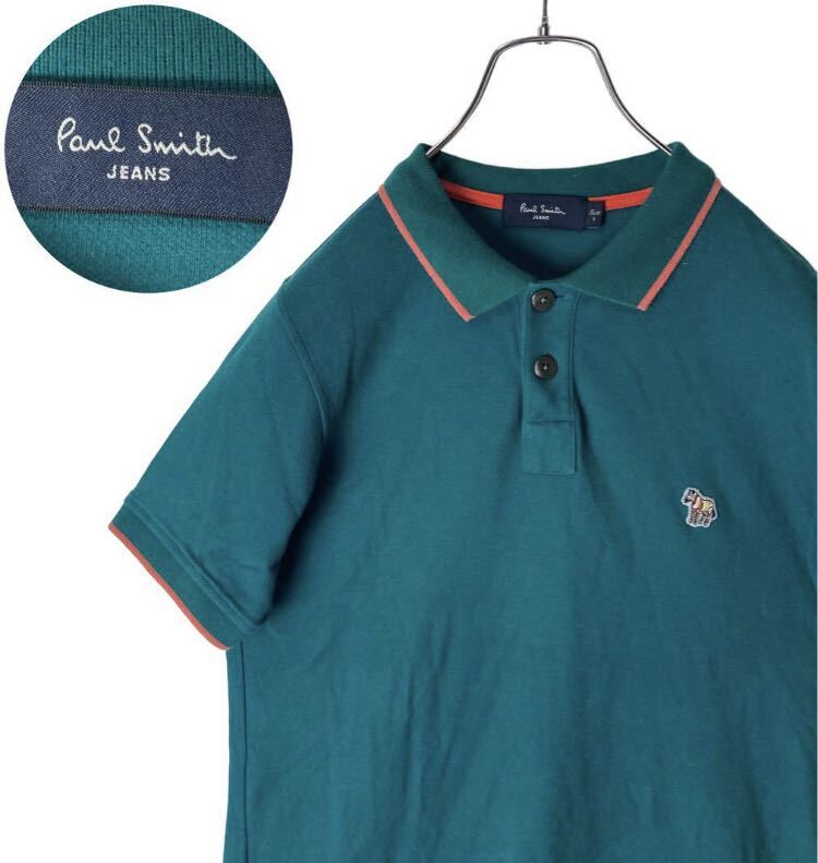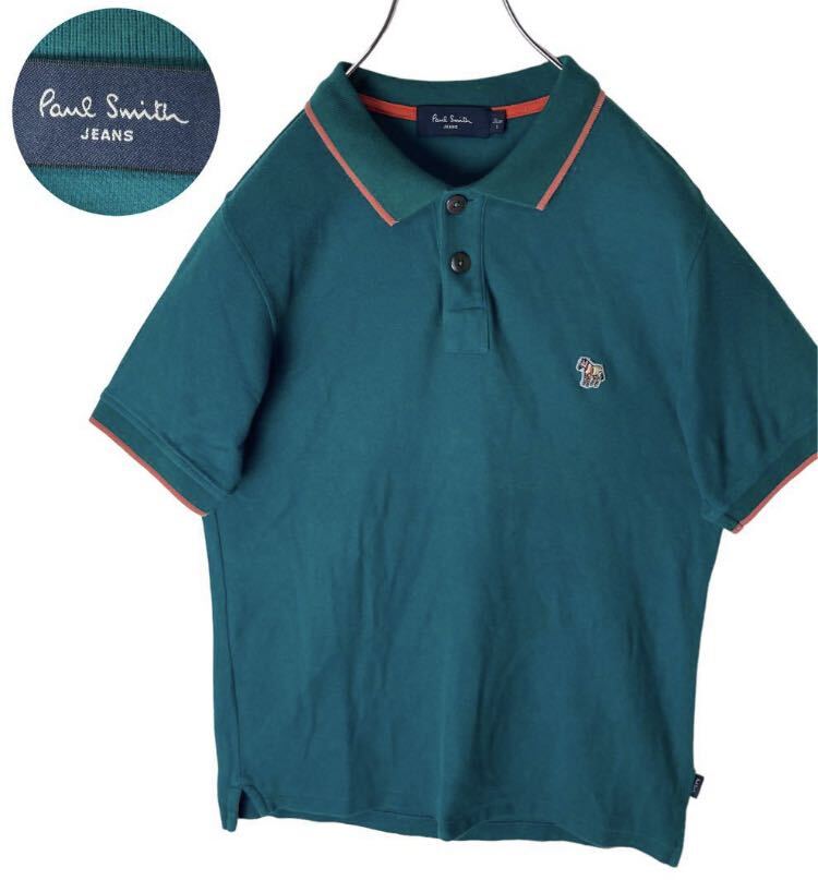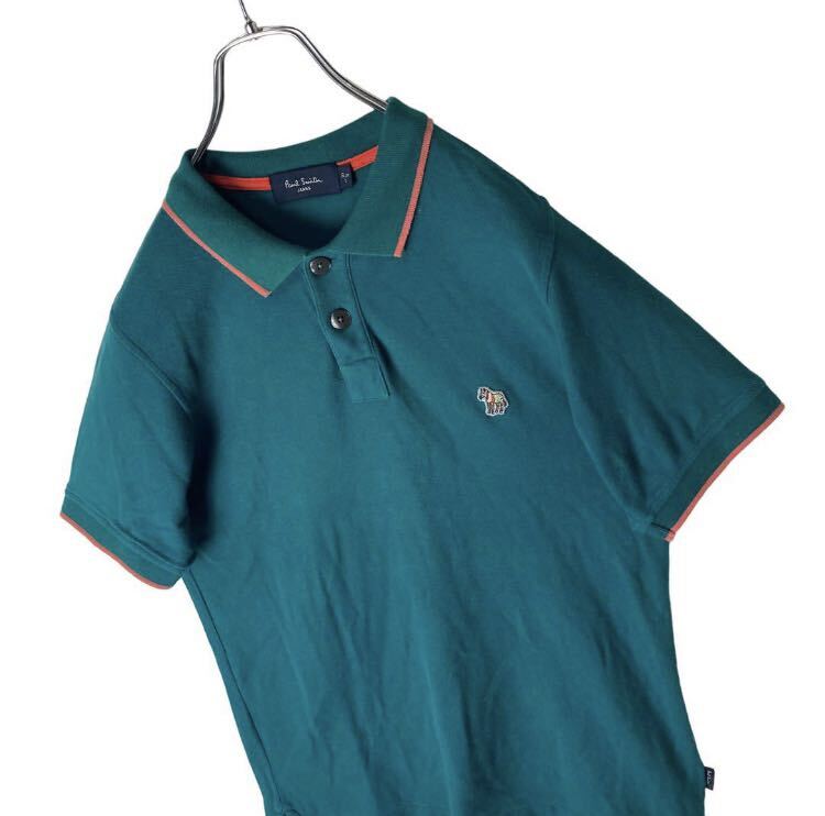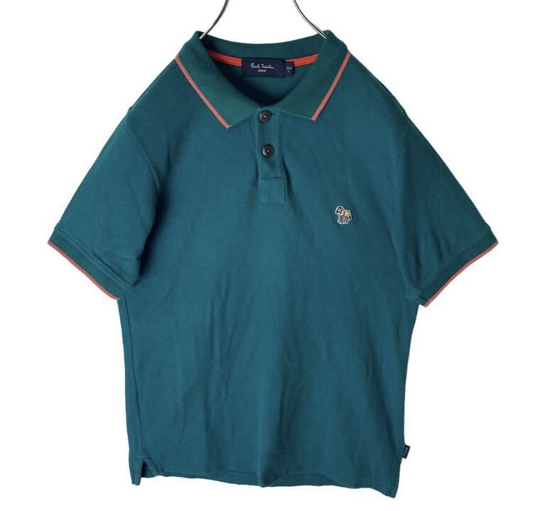 希少!ポールスミスジーンズ レインボーシマウマ刺繍ロゴ グリーンポロシャツ