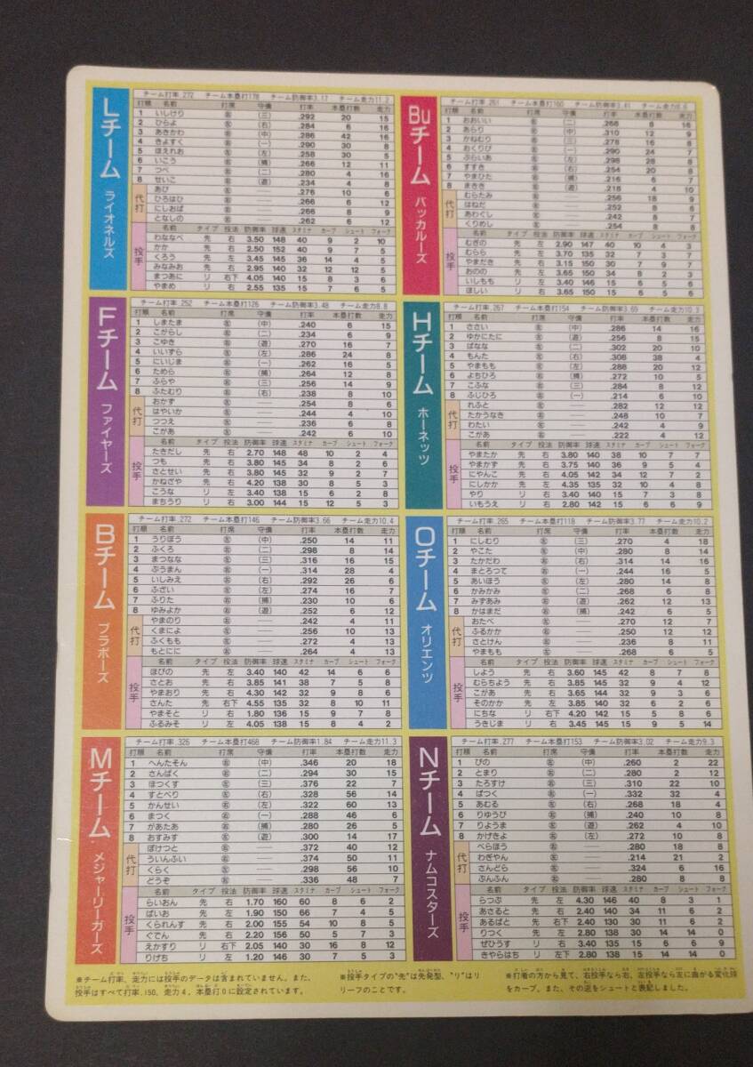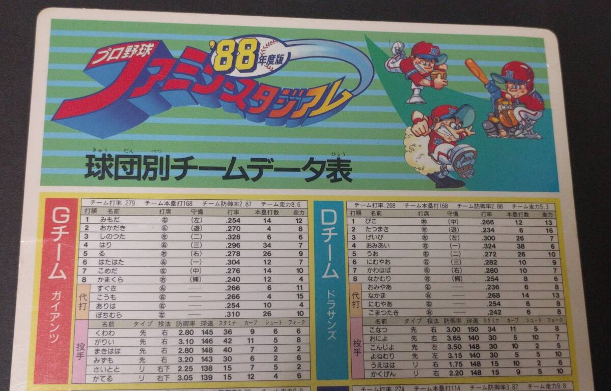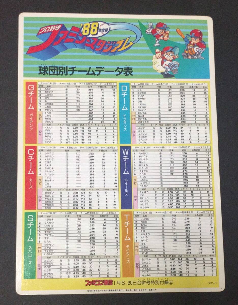 下敷き プロ野球 ファミリースタジアム 88年度版 球団別チームデータ表 ファミスタ 1988 ファミコン通信