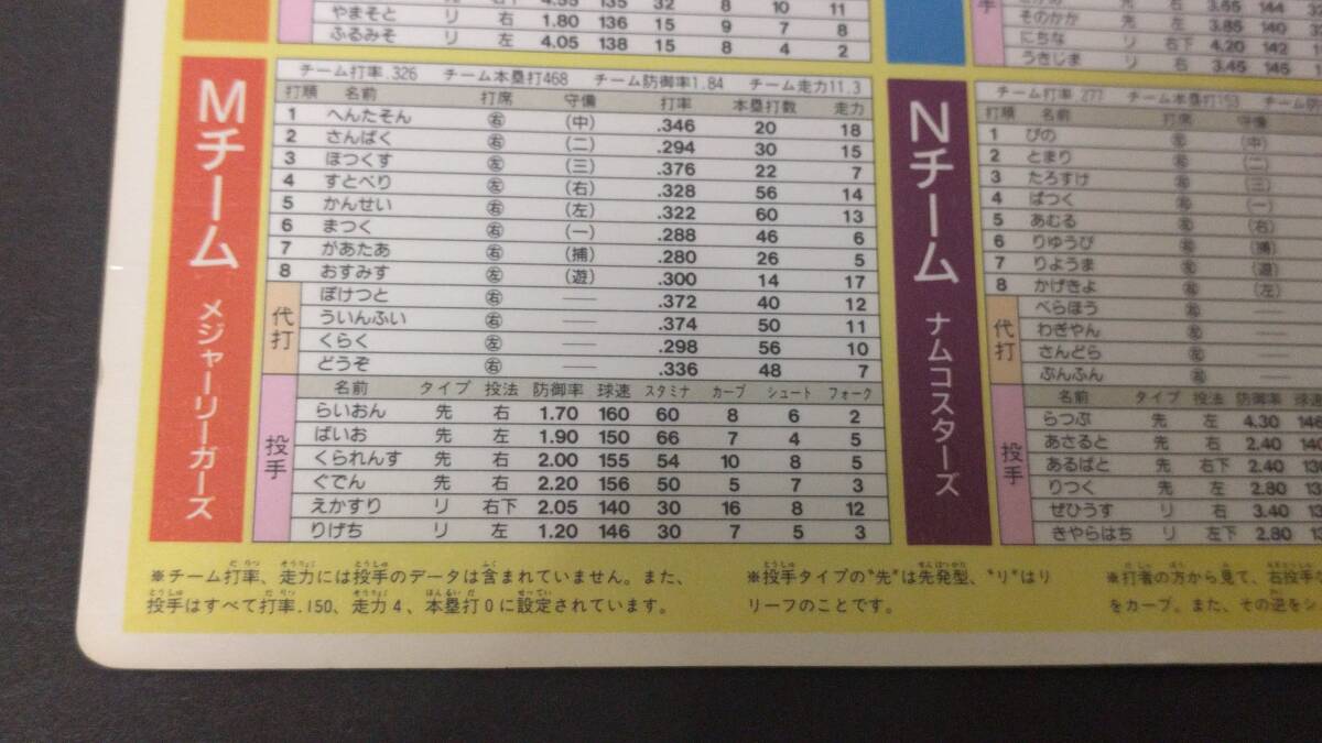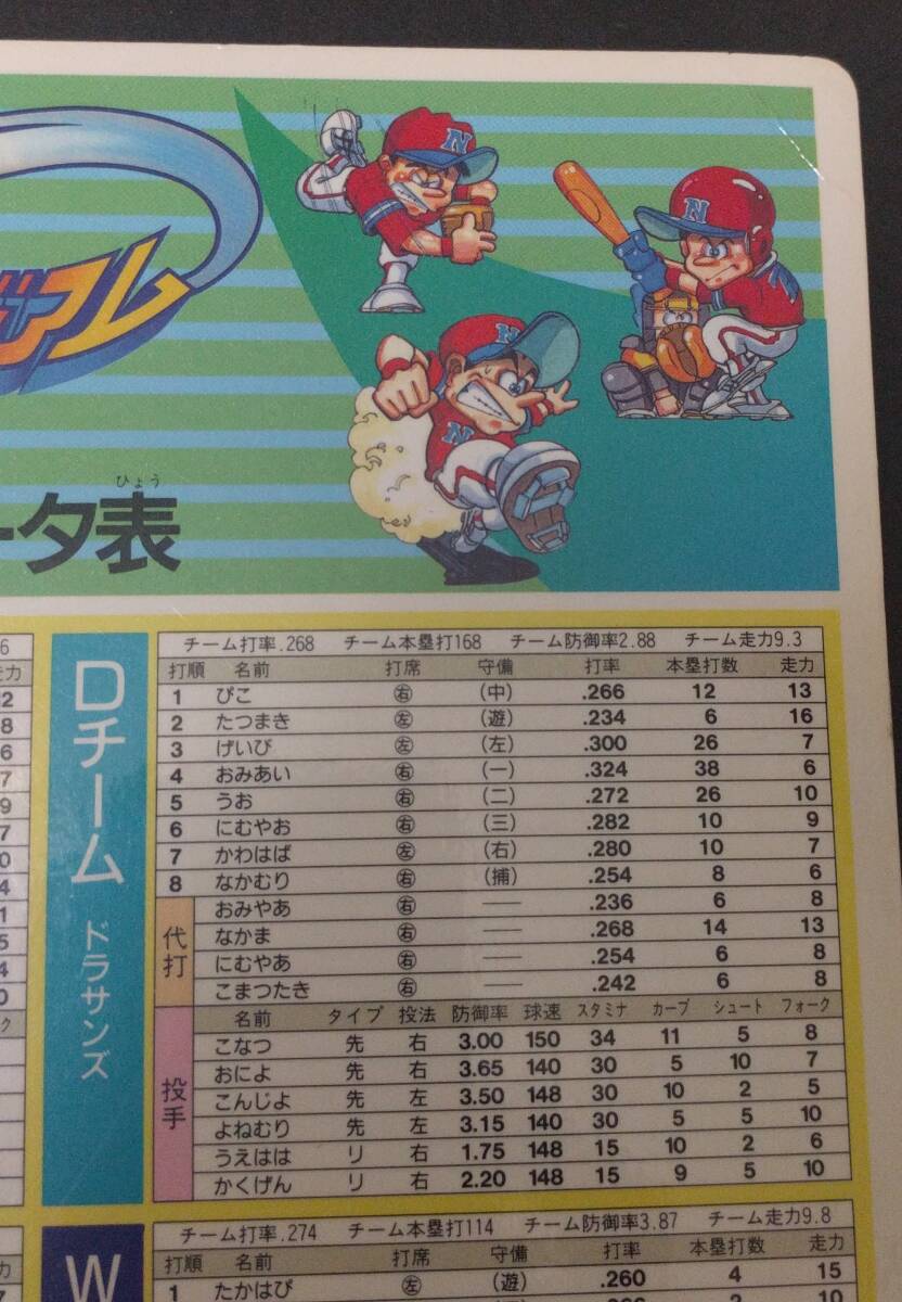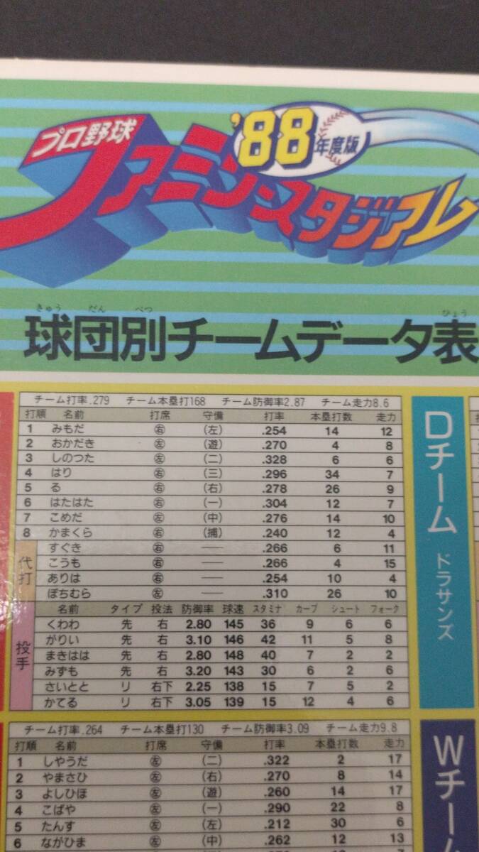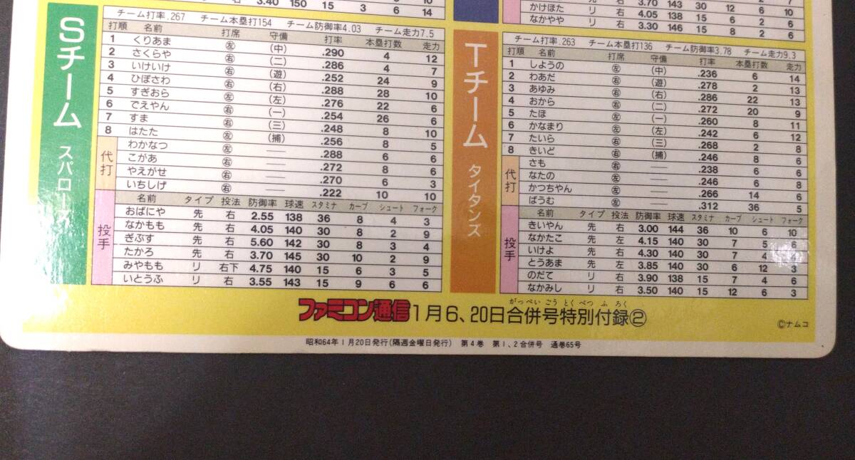下敷き プロ野球 ファミリースタジアム 88年度版 球団別チームデータ表 ファミスタ 1988 ファミコン通信