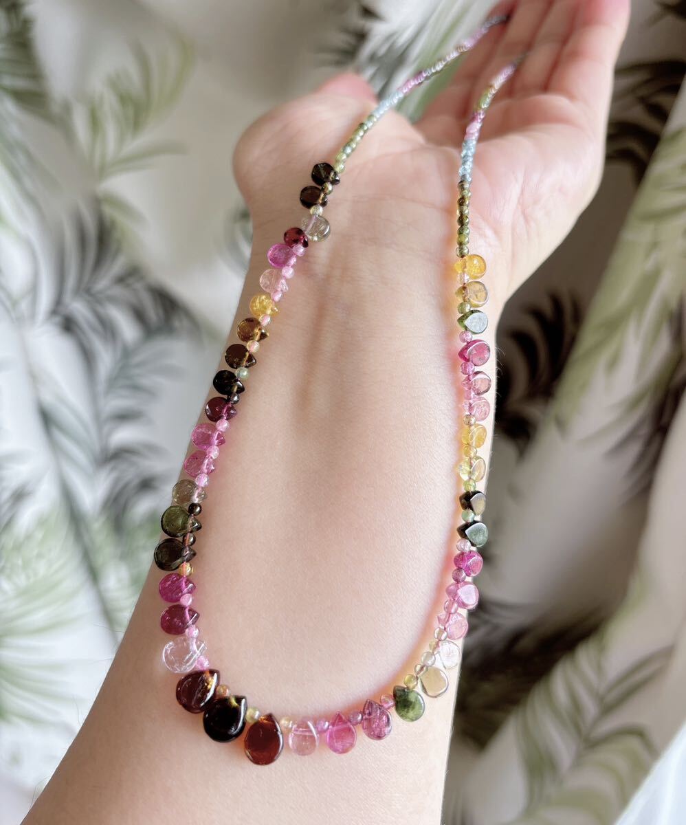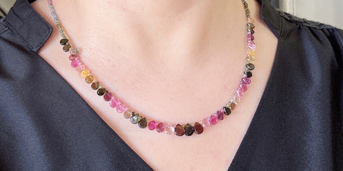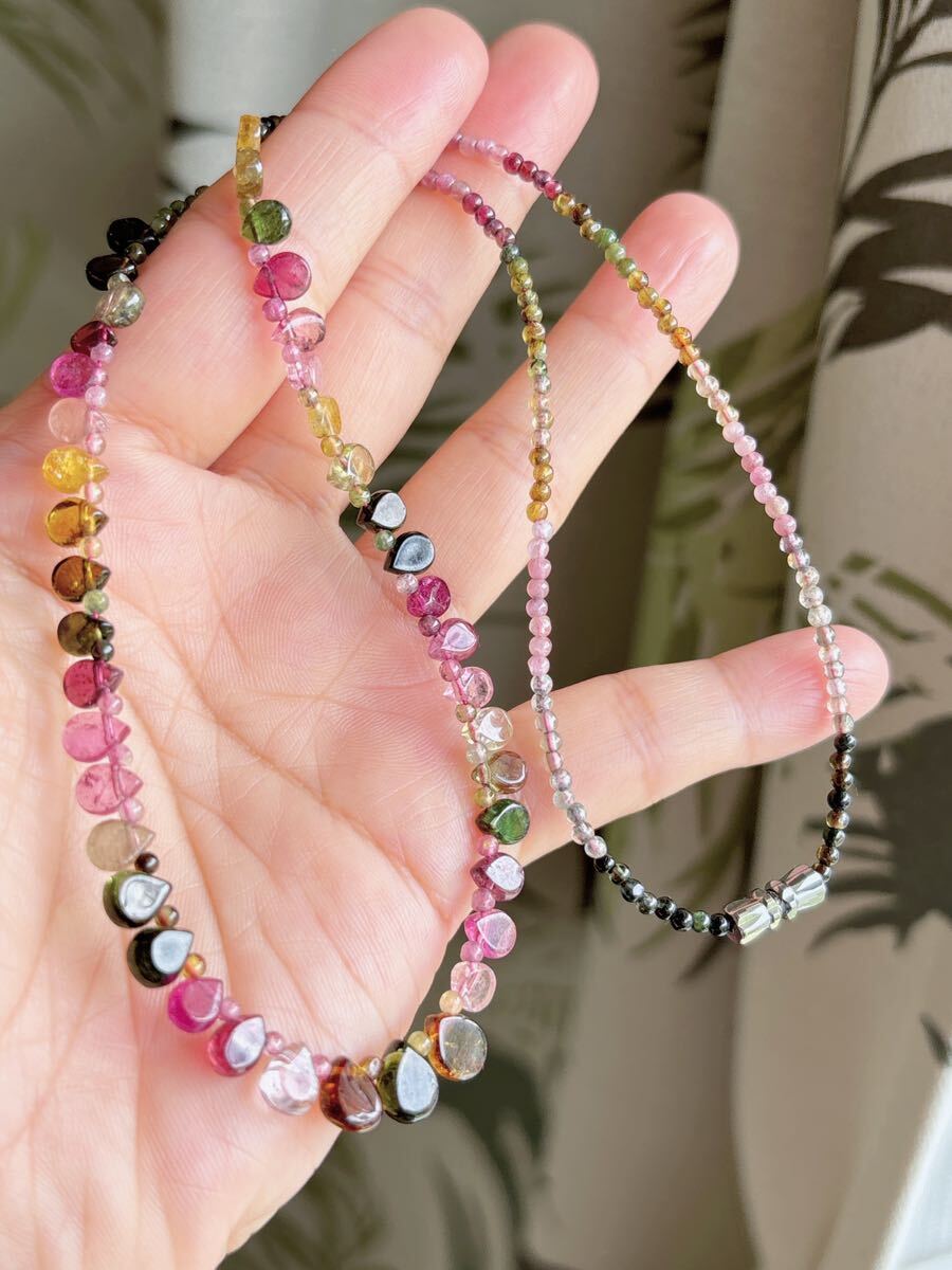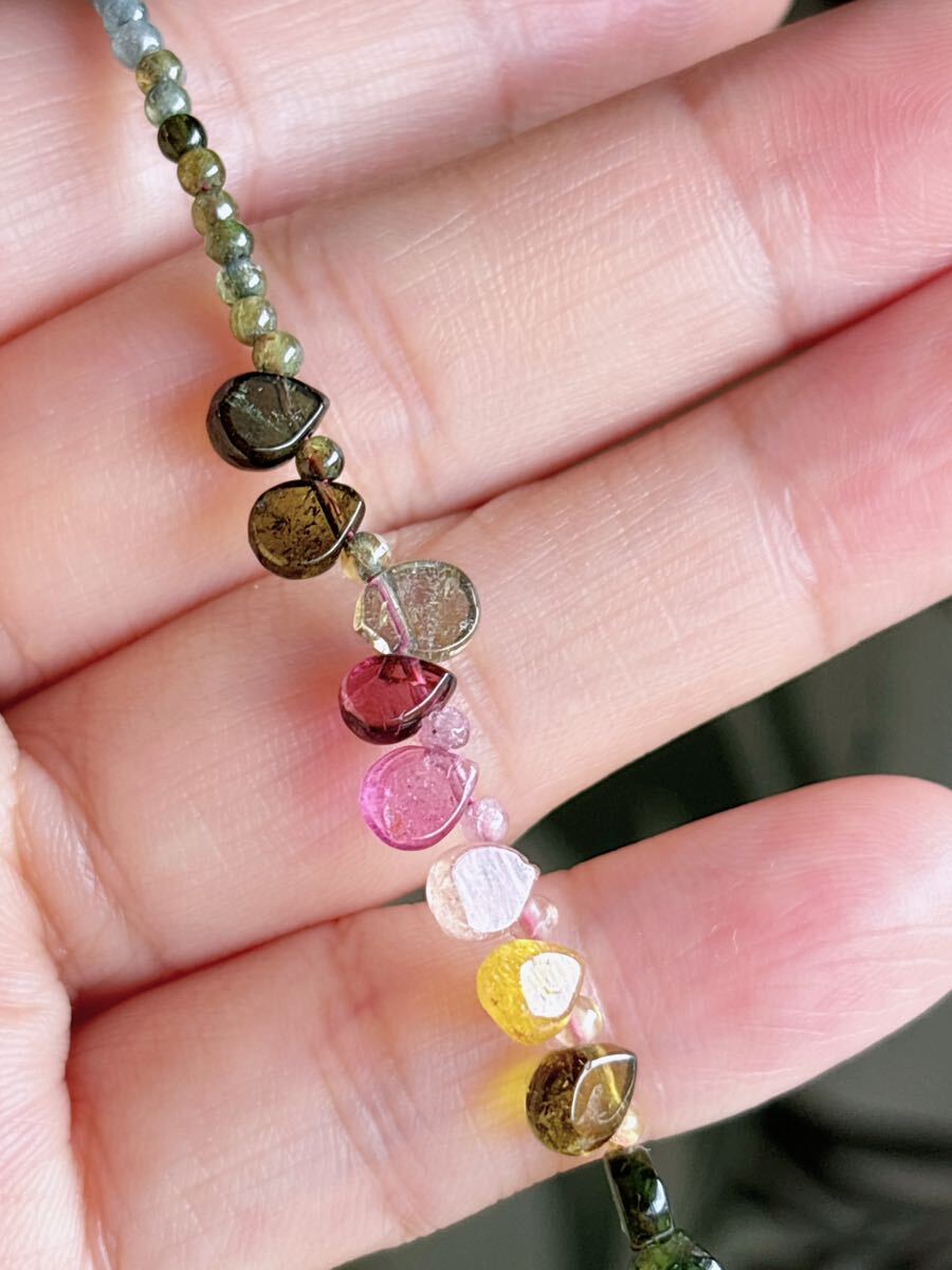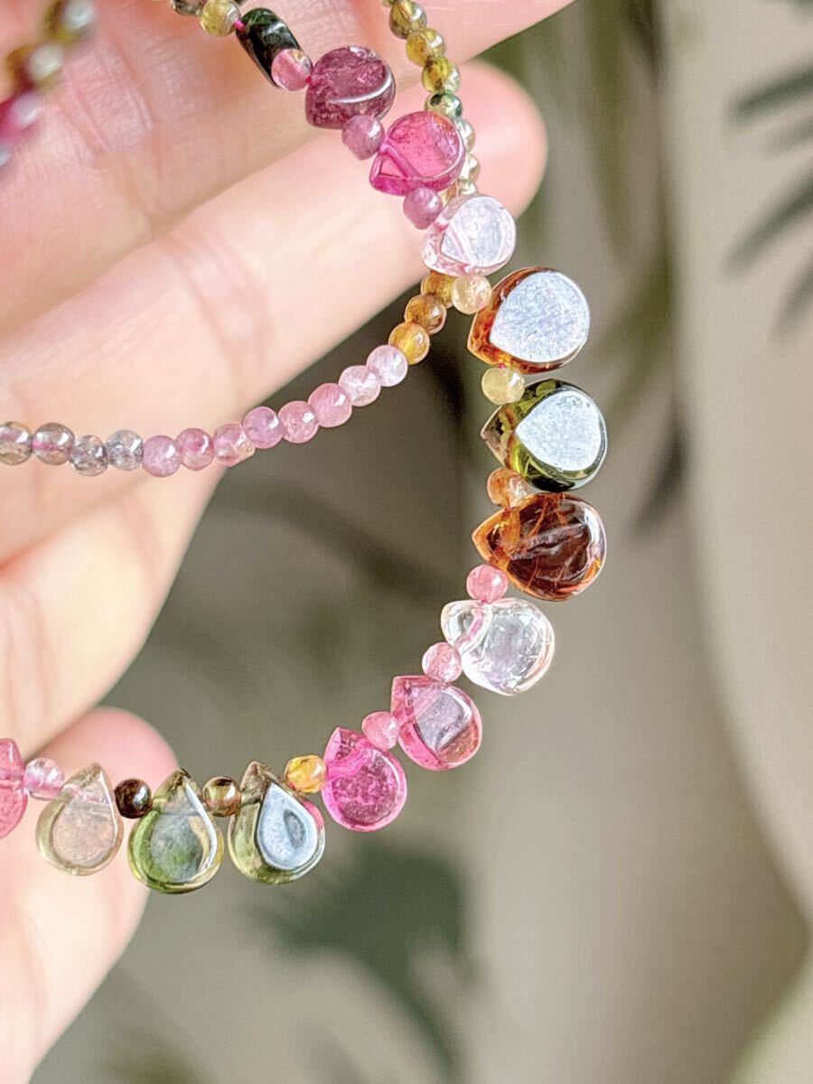 * *丸玉が1つ足りないので、一つ水滴のトルマリンがある方向は逆です、特価になっているので、写真を確認してください。気になる方は慎重に購入してください。**