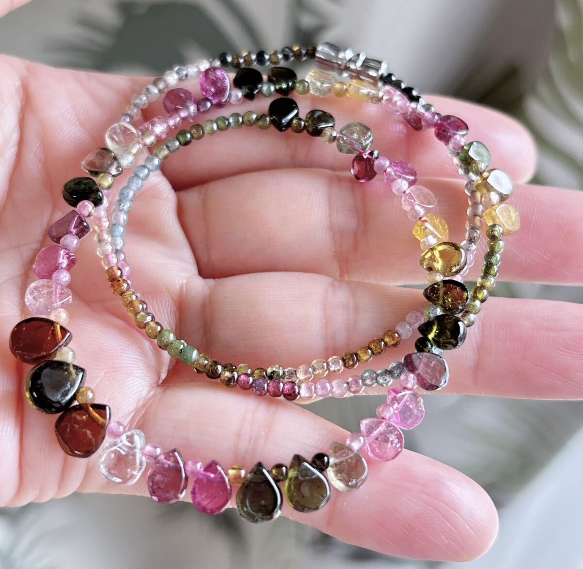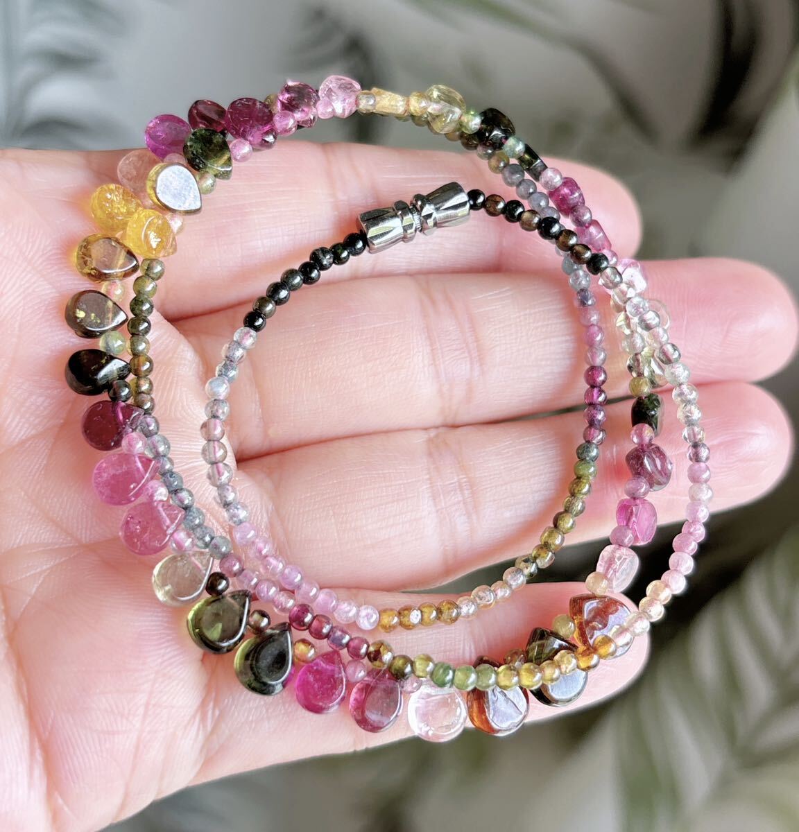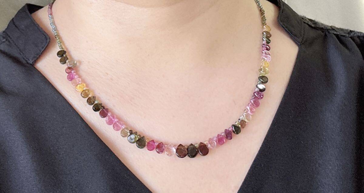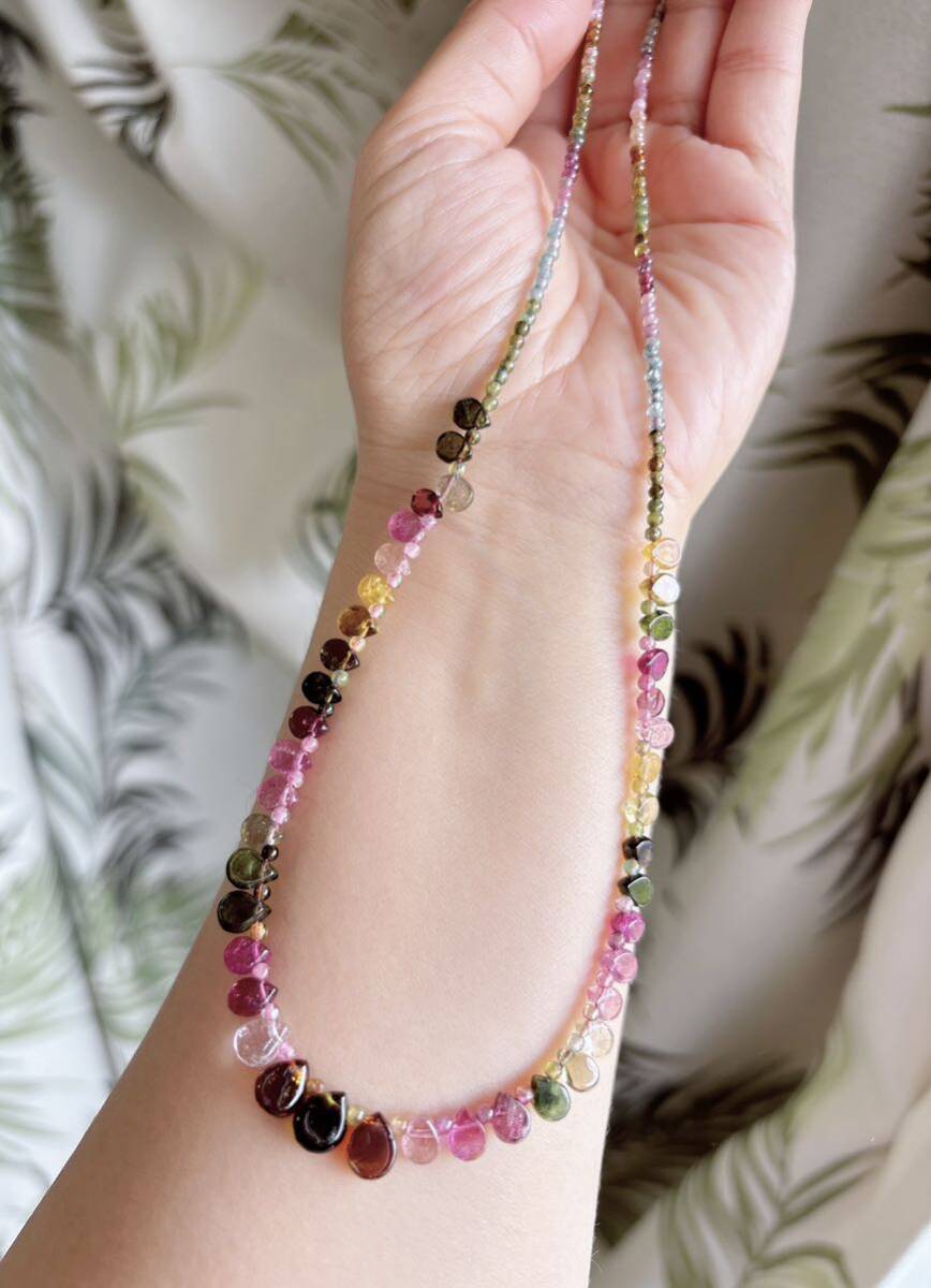 * *丸玉が1つ足りないので、一つ水滴のトルマリンがある方向は逆です、特価になっているので、写真を確認してください。気になる方は慎重に購入してください。**