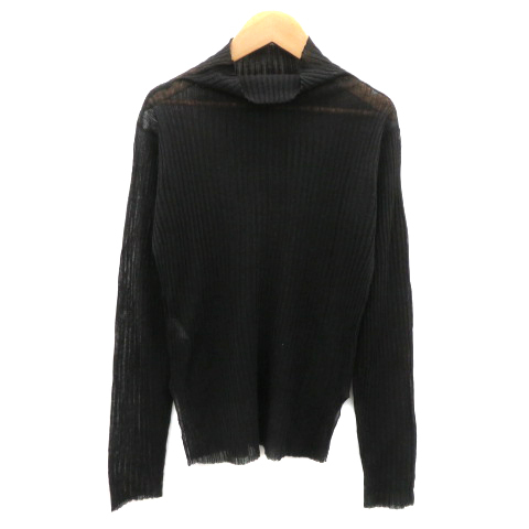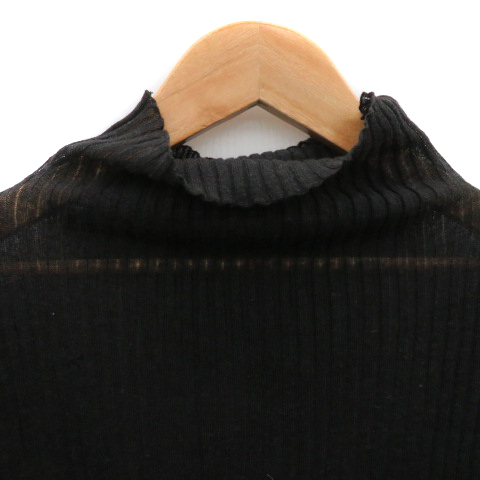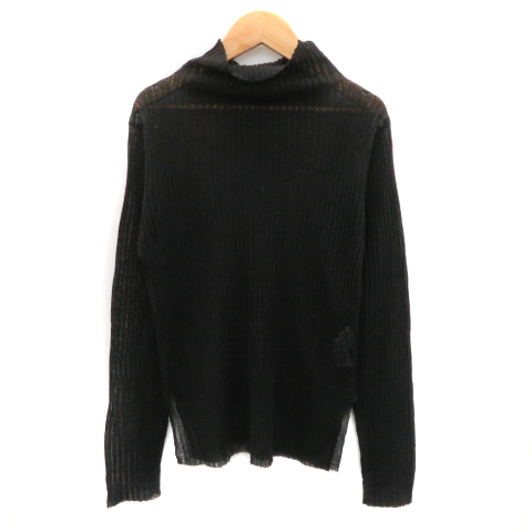 マウジー moussy ニット カットソー 長袖 ハイネック シースルー 無地 薄手 リネン混 F 黒 ブラック /YK1 ■MO レディース