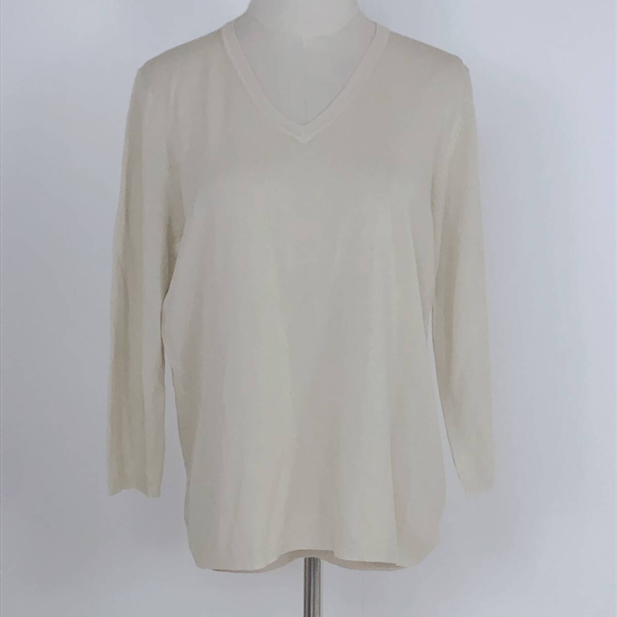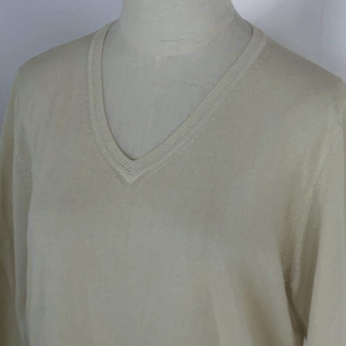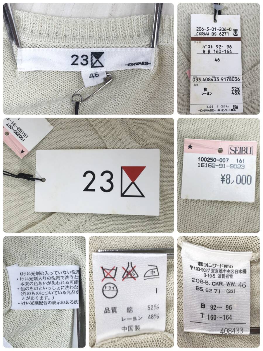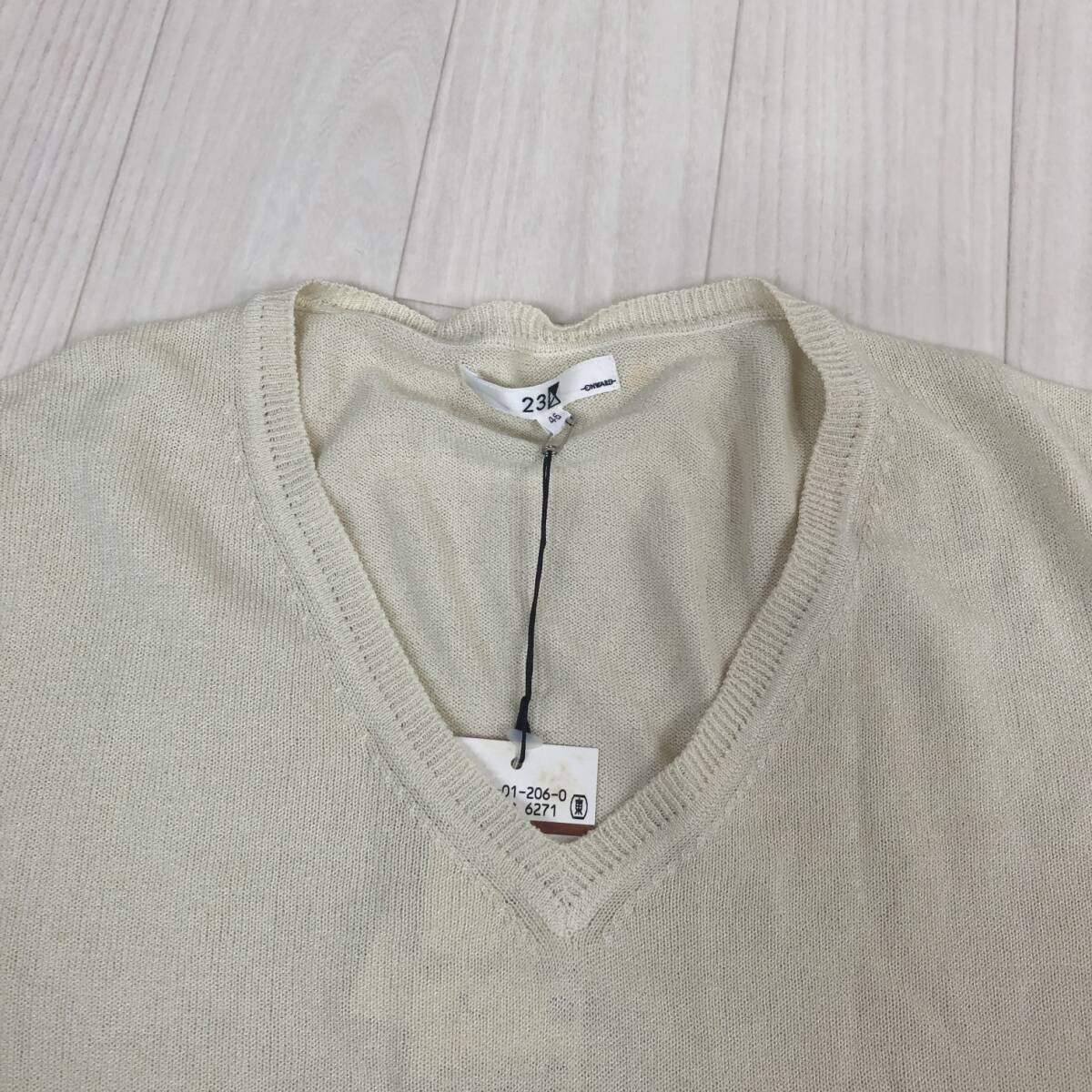 Y0992 美品 23区 レディース トップスセーター 長袖 薄手 伸縮性 Vネック サイズ46 ベージュ 綿素材含 シンプル あたたか カジュアル 春秋