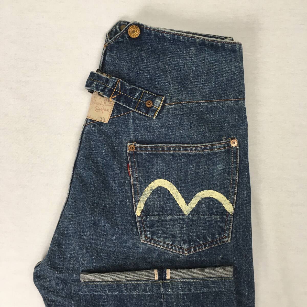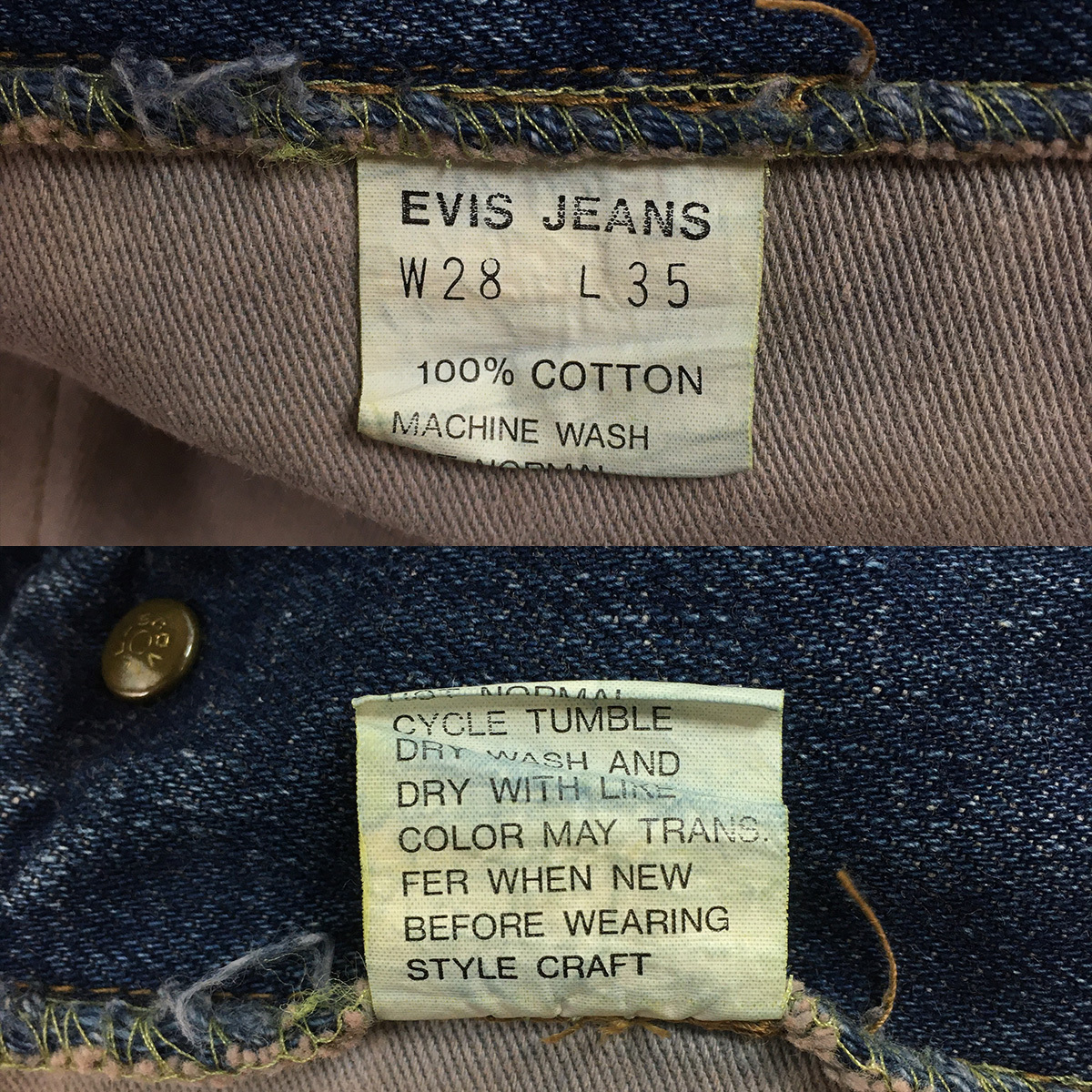 EVISU エヴィス 2503 ジーンズ 日本製 W28 L35 EVISタグ ボタンフライ 赤耳 針刺しシンチバック バッファロー布パッチ サスペンダーボタン