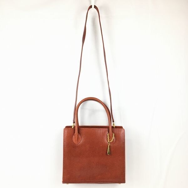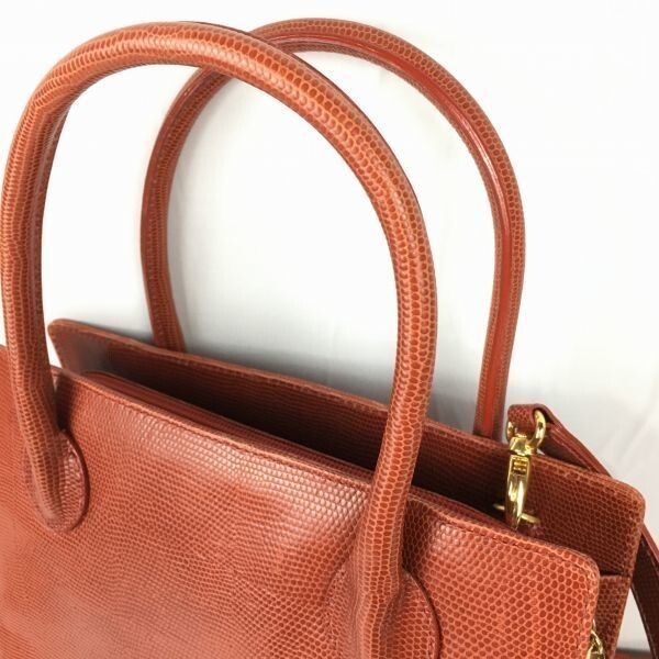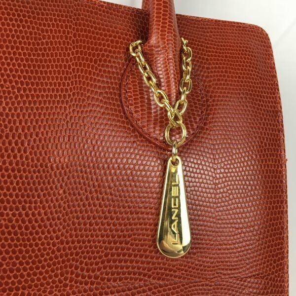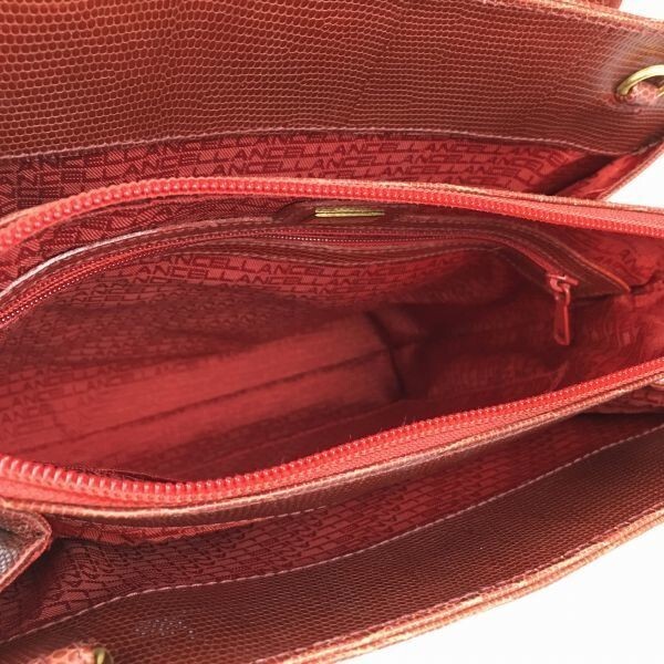 LANCEL/ランセル レザー ハンド ショルダーバッグ 赤オレンジ 収納3箇所 管NO.WB10-14