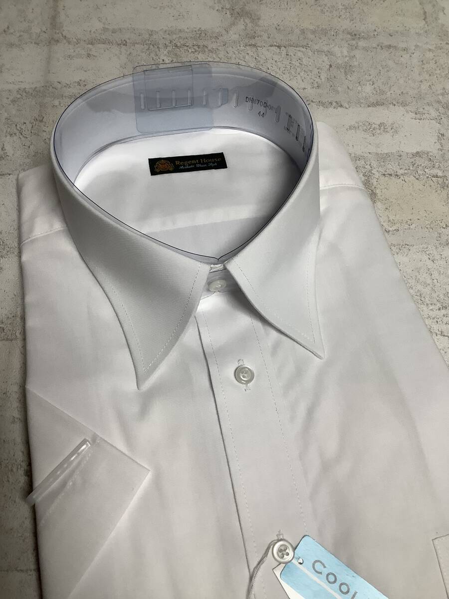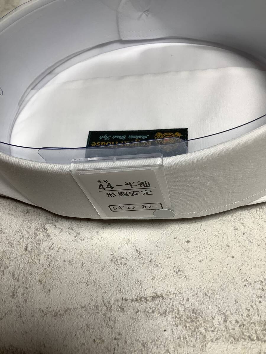 新品未使用 3Lサイズ 44cm 半袖シャツ 白レギュラーカッターシャツ 綿ポリ 麻入り