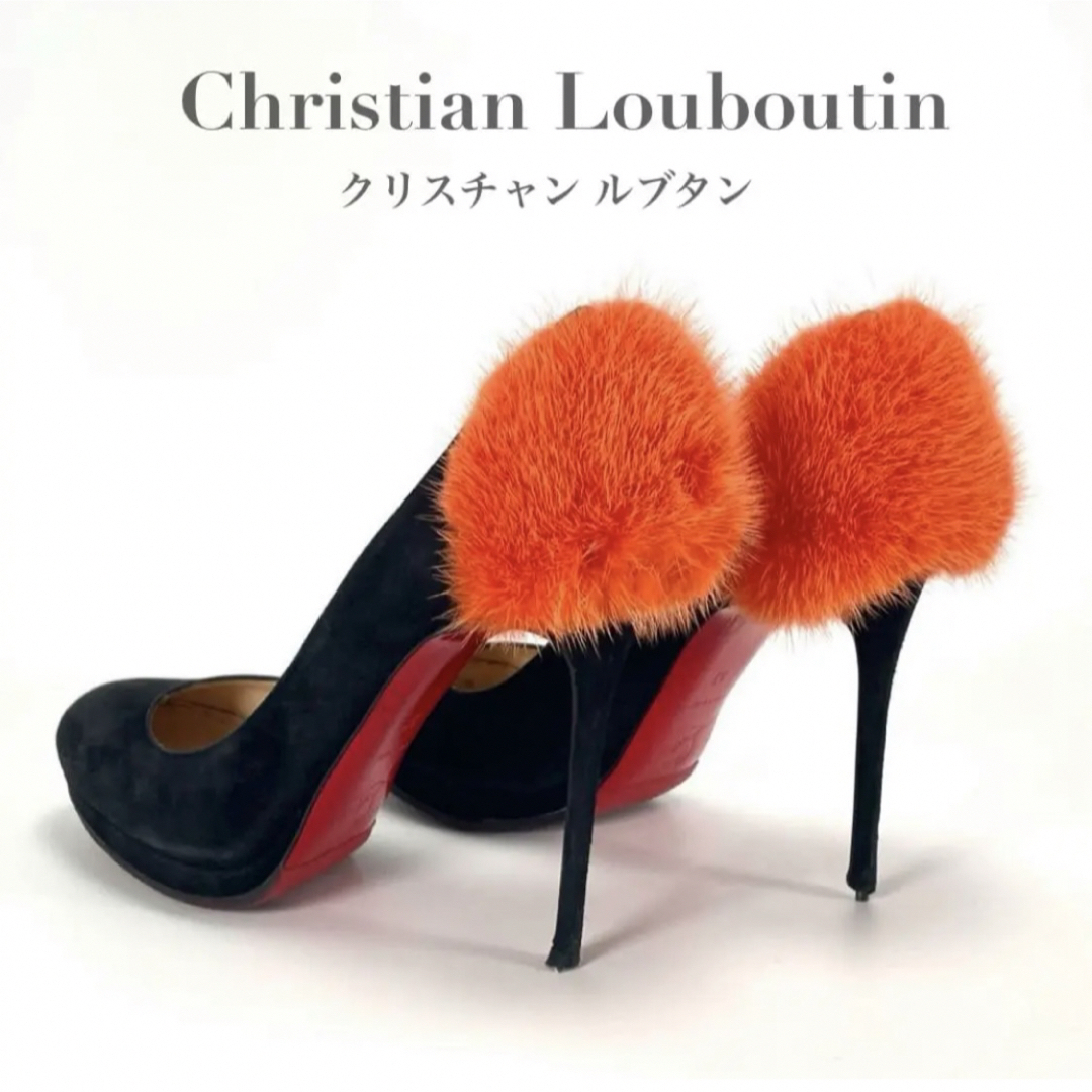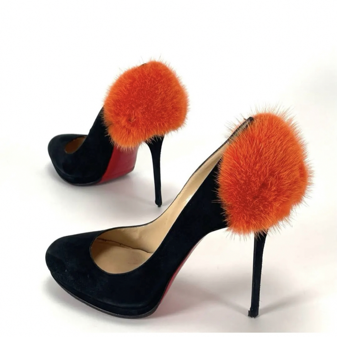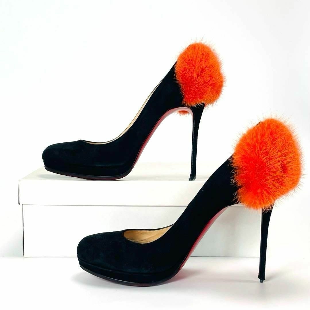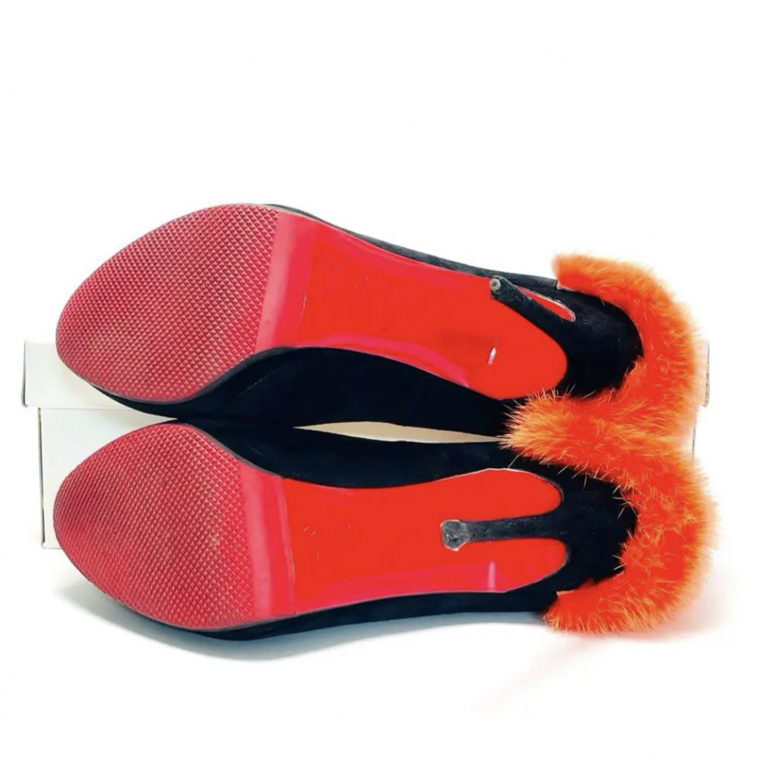ブラック×オレンジのファーがゴージャスなクリスチャンルブタンのパンプスです。