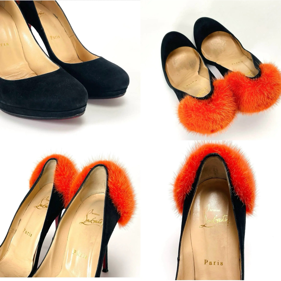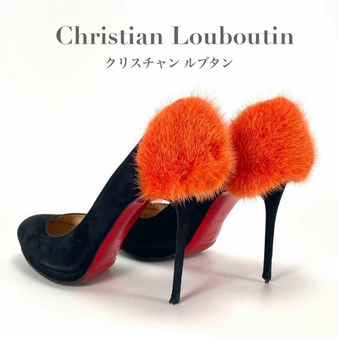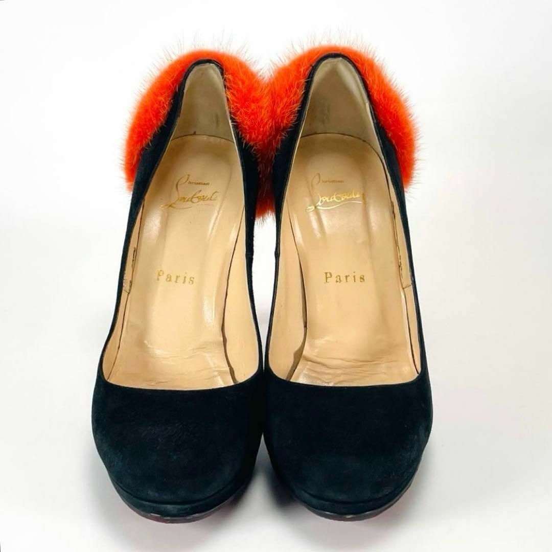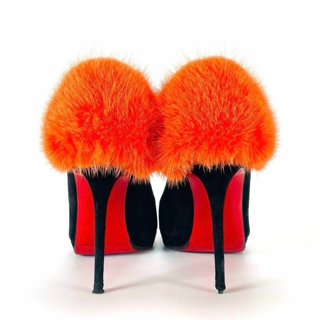 ブラック×オレンジのファーがゴージャスなクリスチャンルブタンのパンプスです。