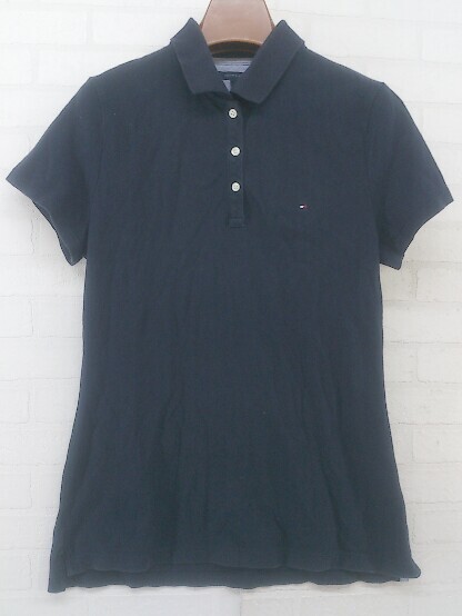 ◇ TOMMY HILFIGER トミーヒルフィガー ワンポイント 半袖 ポロシャツ サイズL ネイビー レディース P